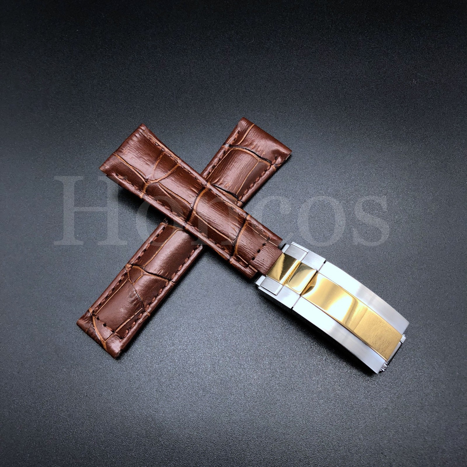 20MM Leather Alligator Strap Band Deployant Buckle Clasp fits for Rolex Daytona