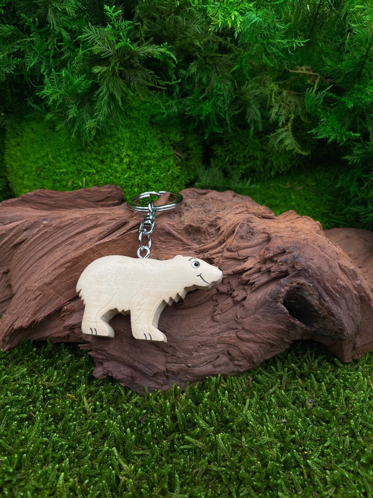 Wood Keychain Eisb r Bear Predator Polar Snowfall Pendant Gift Box