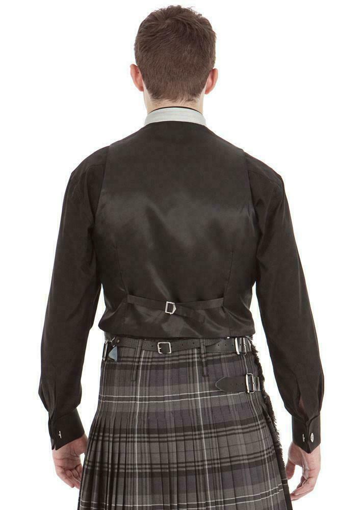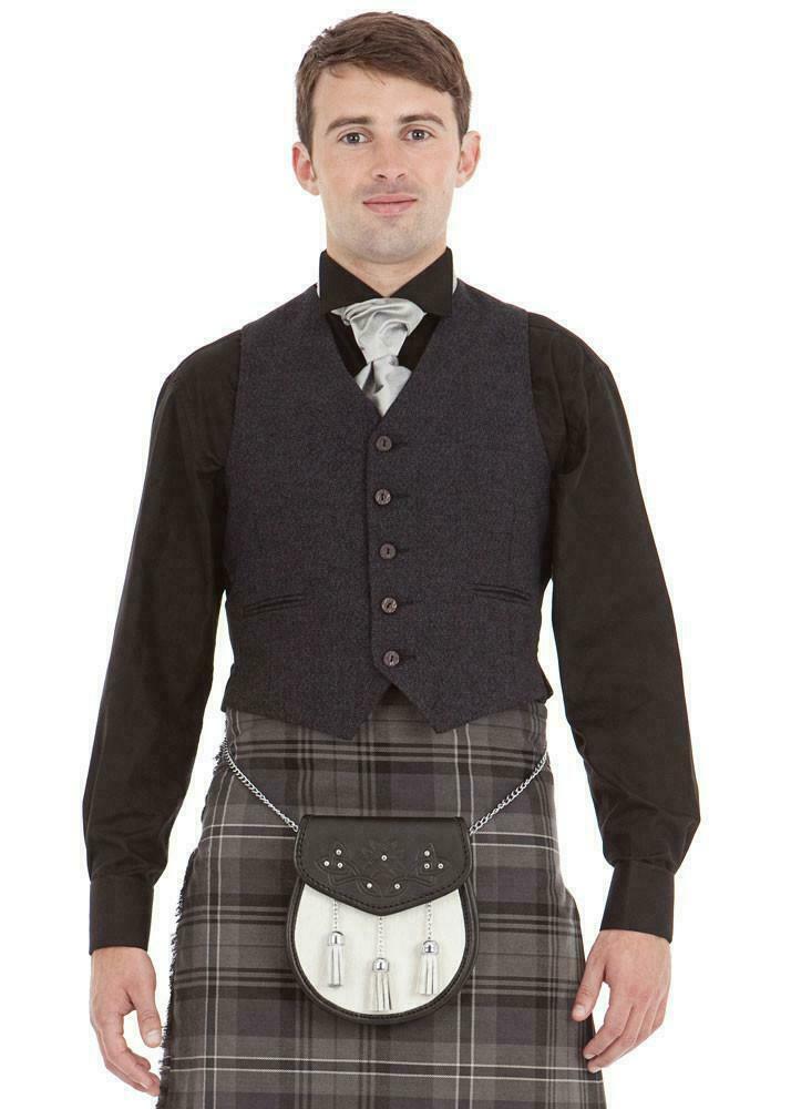 Men Wool Tweed Scottish BRAEMAR Kilt Jacket with Waistcoat - Grey Black