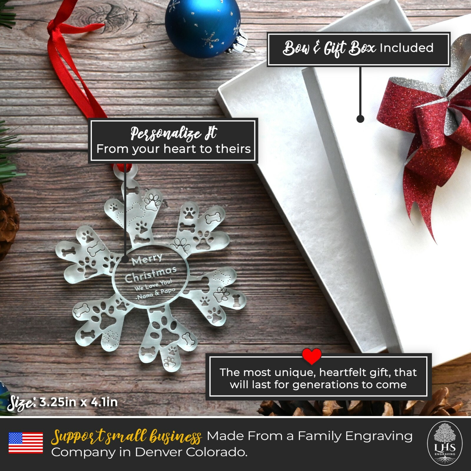 LHS - Personalized Snowflake Paw Decor Christmas Ornament Pet Hanging Gift Dog