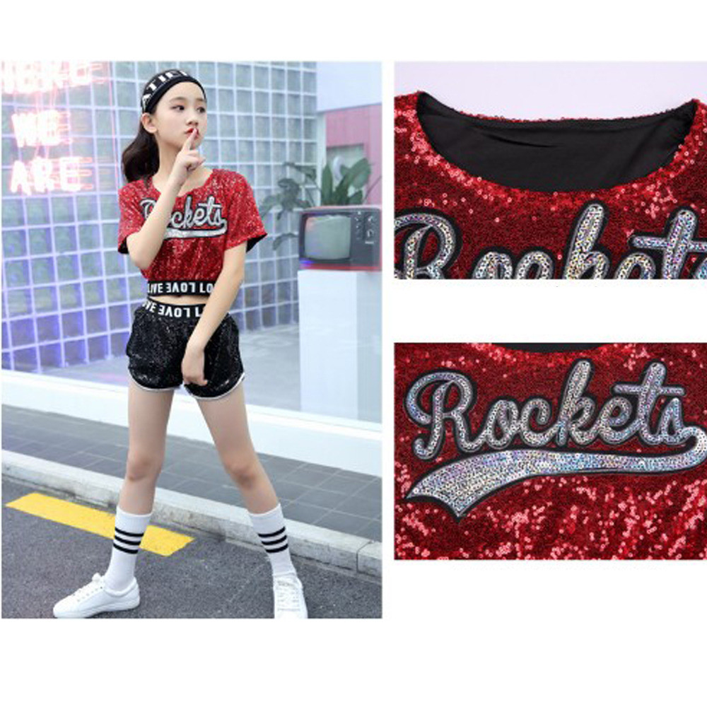 Fashion Ballroom Jazz Hip Hop Dance Sequin Ballroom Modern Costume Crop Dancwear