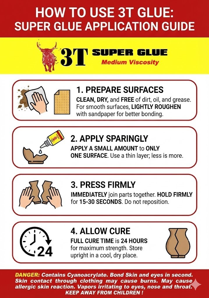 THIN CA Glue -3T 8oz / 2 4 oz Bottles - Super Glue Adhesive - Cyanoacrylate