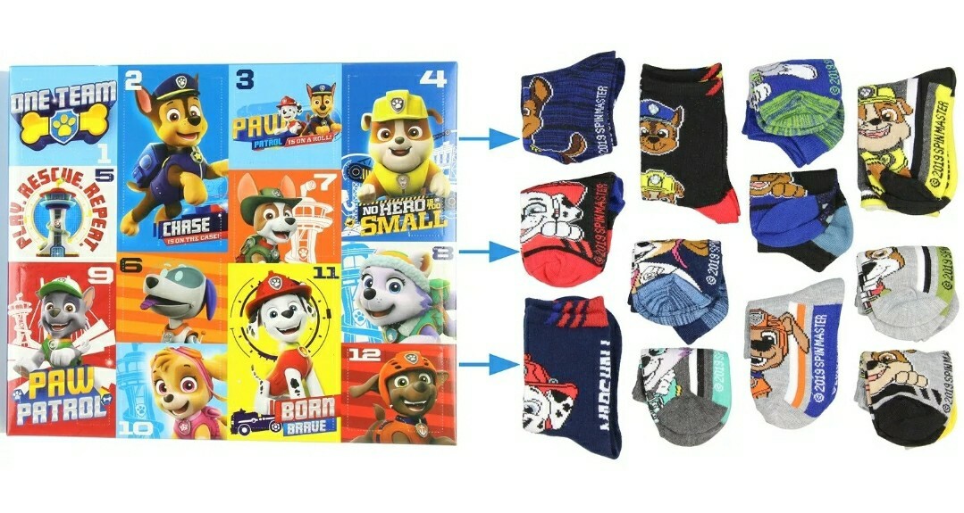 Nickelodeon Paw Patrol Kids 12 Days of Socks Chase, Marshall, Skye New Sz 7-10