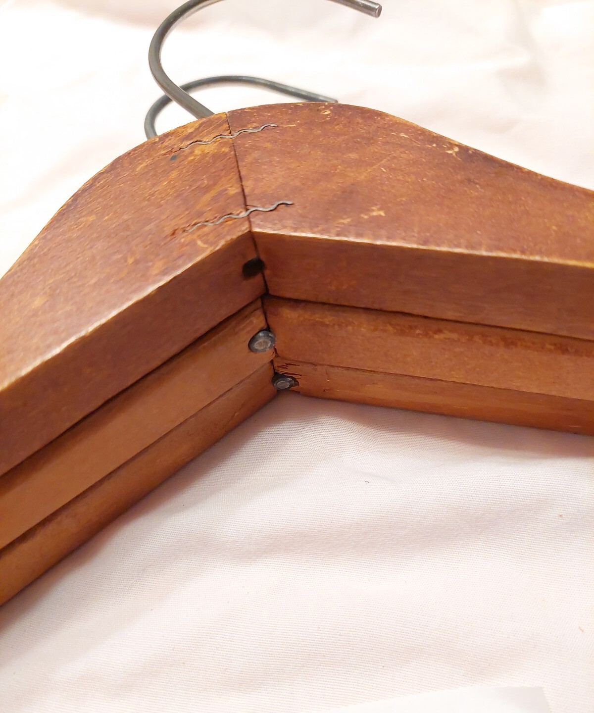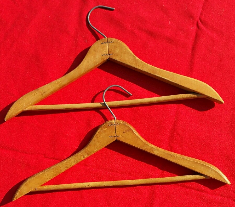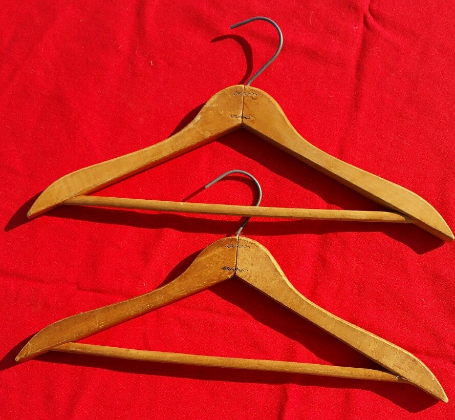 как выглядит 3 Vintage Wood SUIT Hangers MATCHED SIZE SHAPE HOOK H3B фото