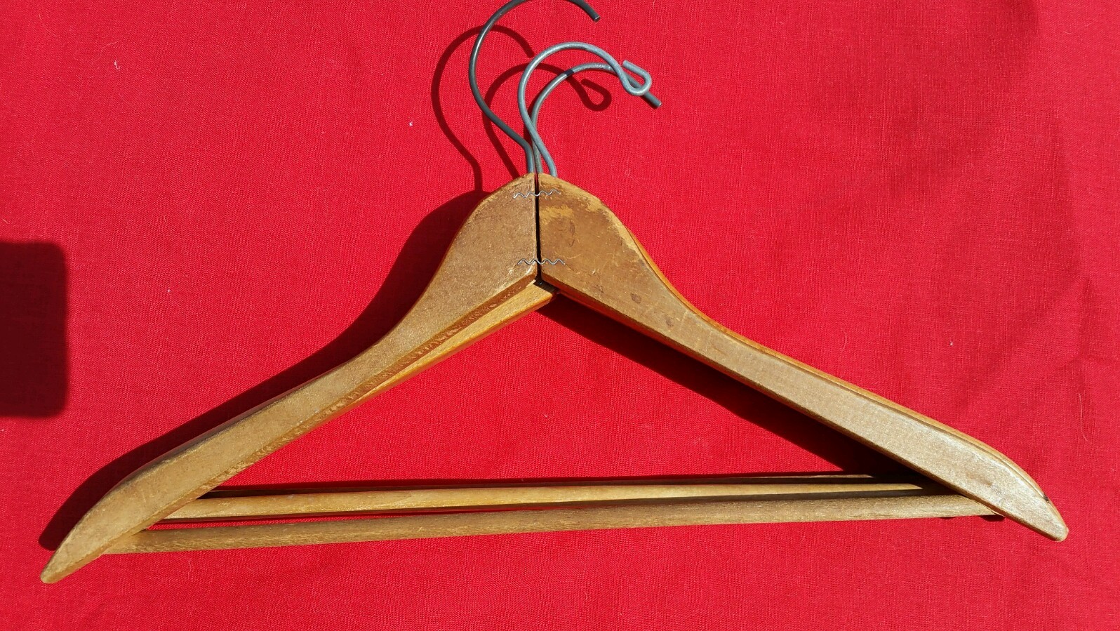 как выглядит 3 Vintage Wood SUIT Hangers FLAT MATCHED SIZE SHAPE H2C фото