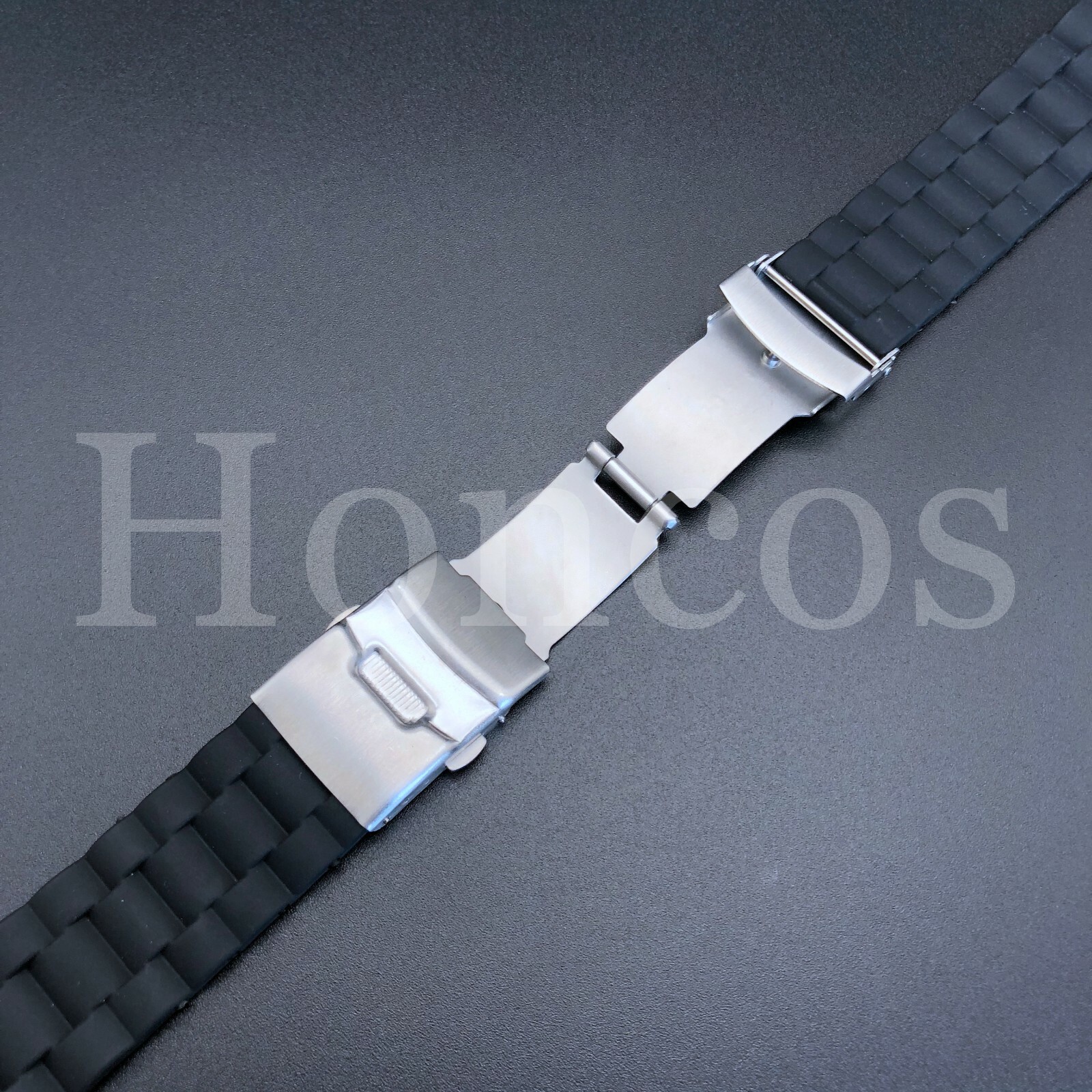 20 MM Black Silicone Rubber Watch Band Strap Deployant Clasp Buckle Replacement