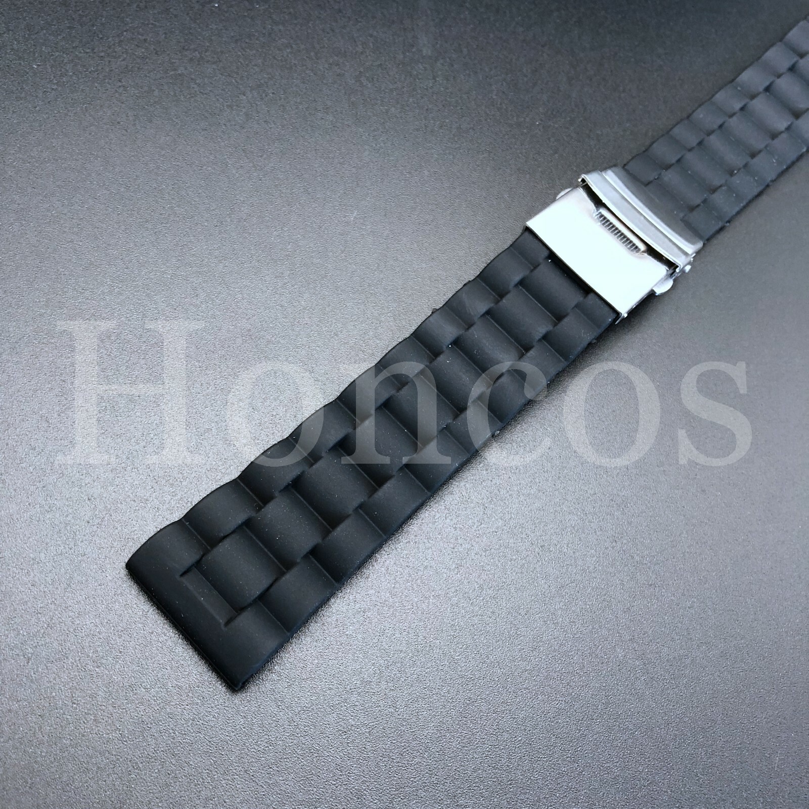 как выглядит 20 MM Black Silicone Rubber Watch Band Strap Deployant Clasp Buckle Replacement фото