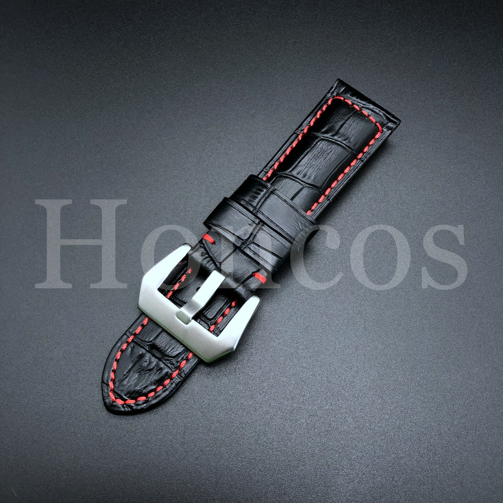как выглядит Fits For Invicta Lupah Genuine Leather 24mm Black/R Alligator Replacement Strap фото