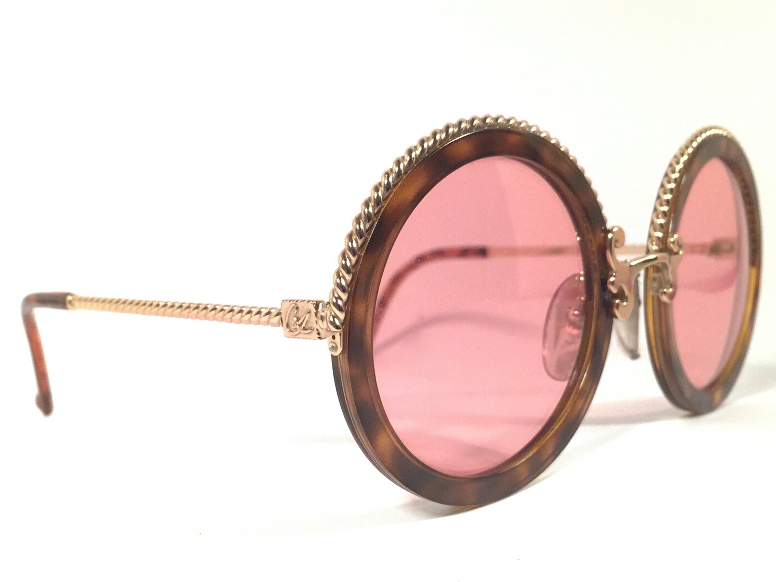 VINTAGE CHRISTIAN LACROIX ROUND TORTOISE GOLD 1980'S GERMANY SUNGLASSES