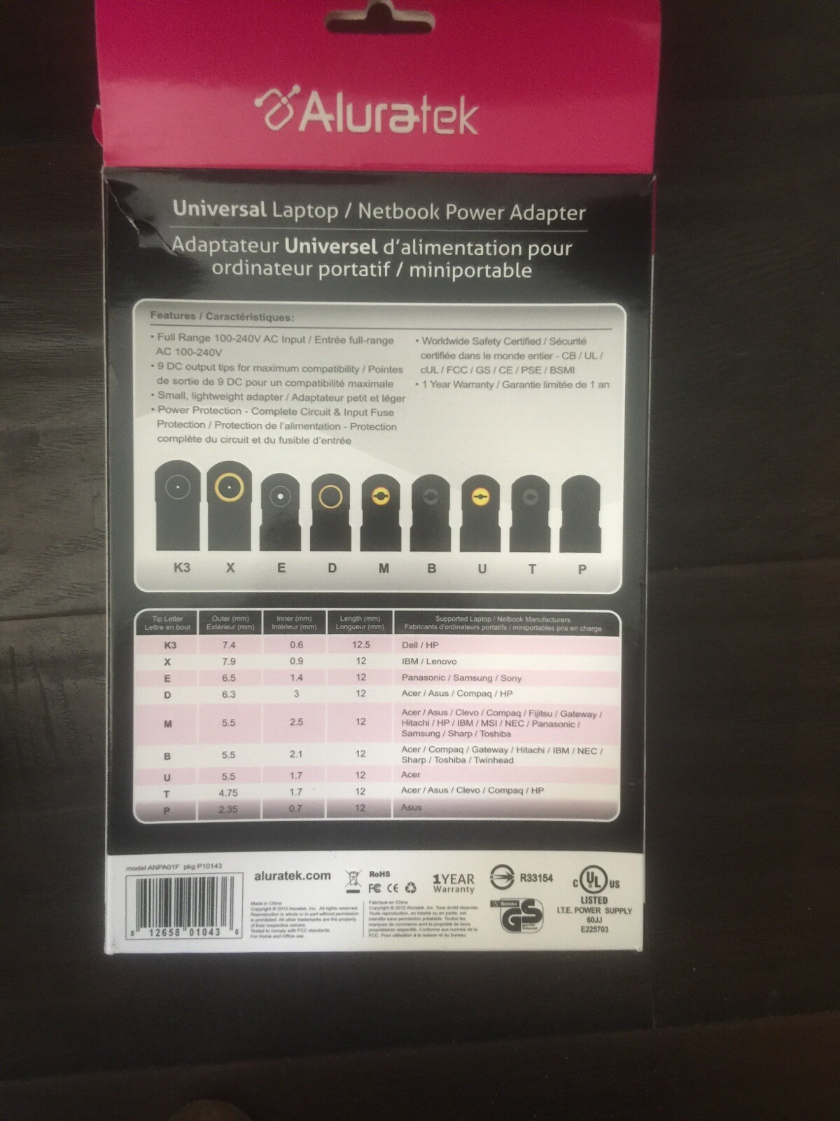 как выглядит ALURATEK ANPA01F UNIV POWER ADAPTER NOTEBOOK фото