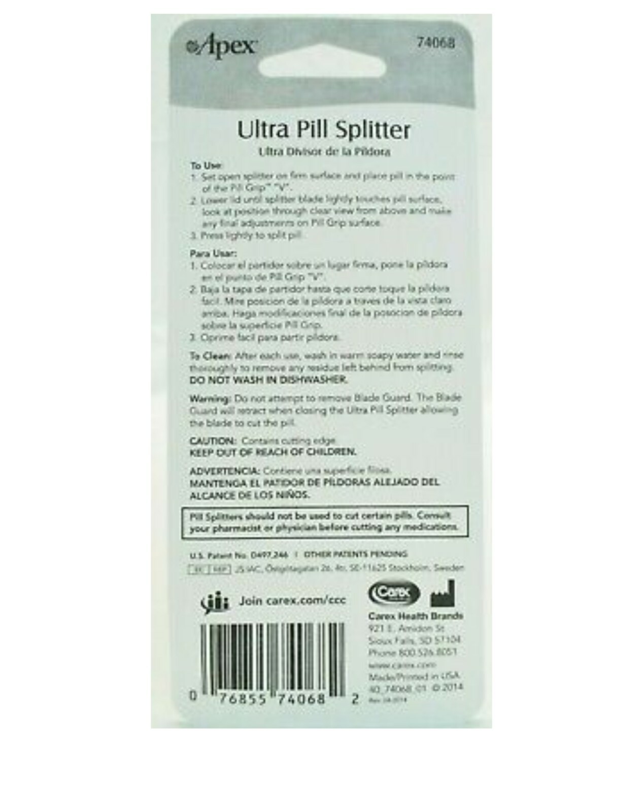 Apex Pill Cutter Splitter Stainless Steel Retracting Blade Guard, Made in USA.