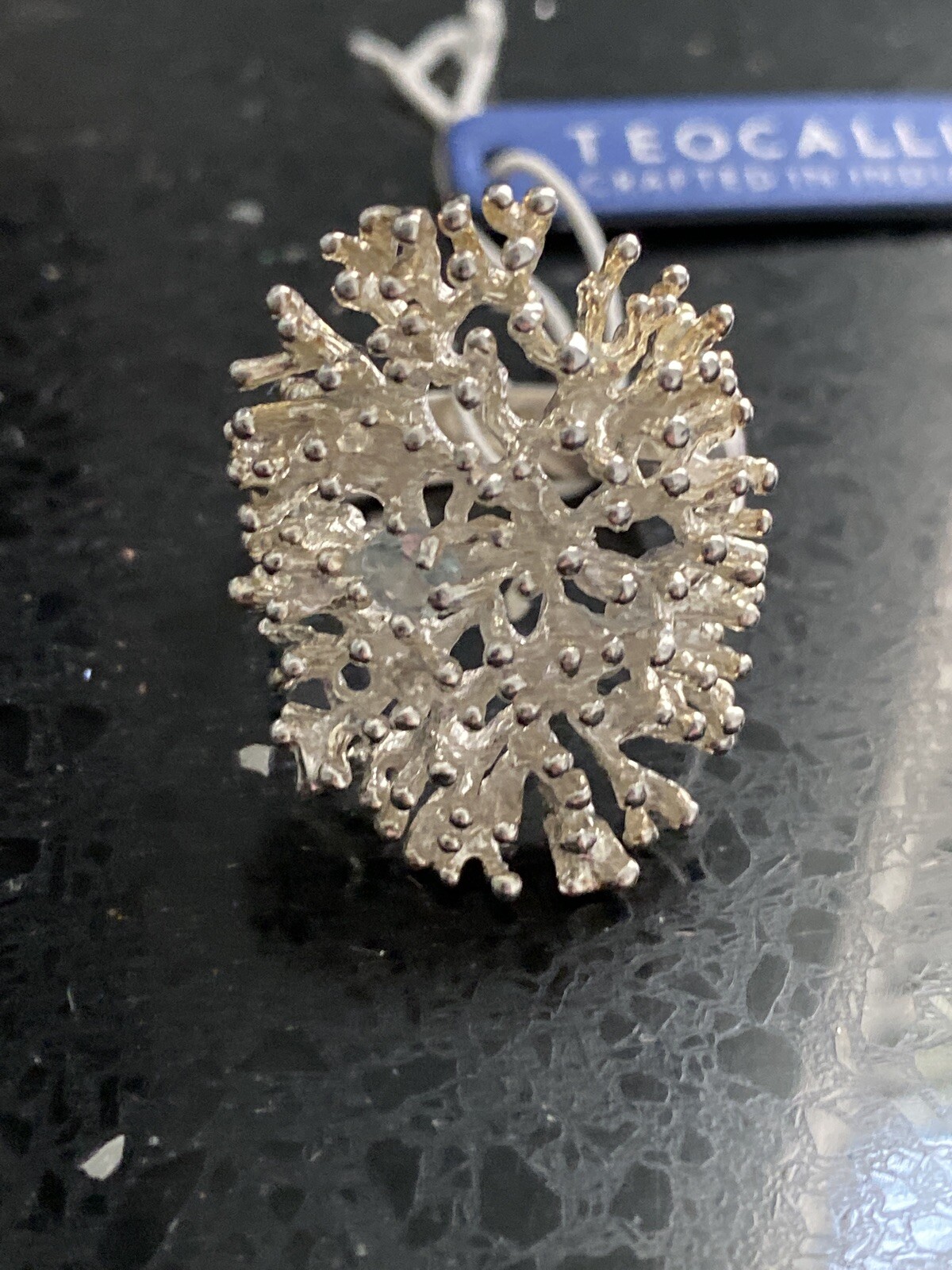 Teocalli Sterling Silver Beach Coral Reef Sculpted w/ Blue Chalcedony Ring Sz 10