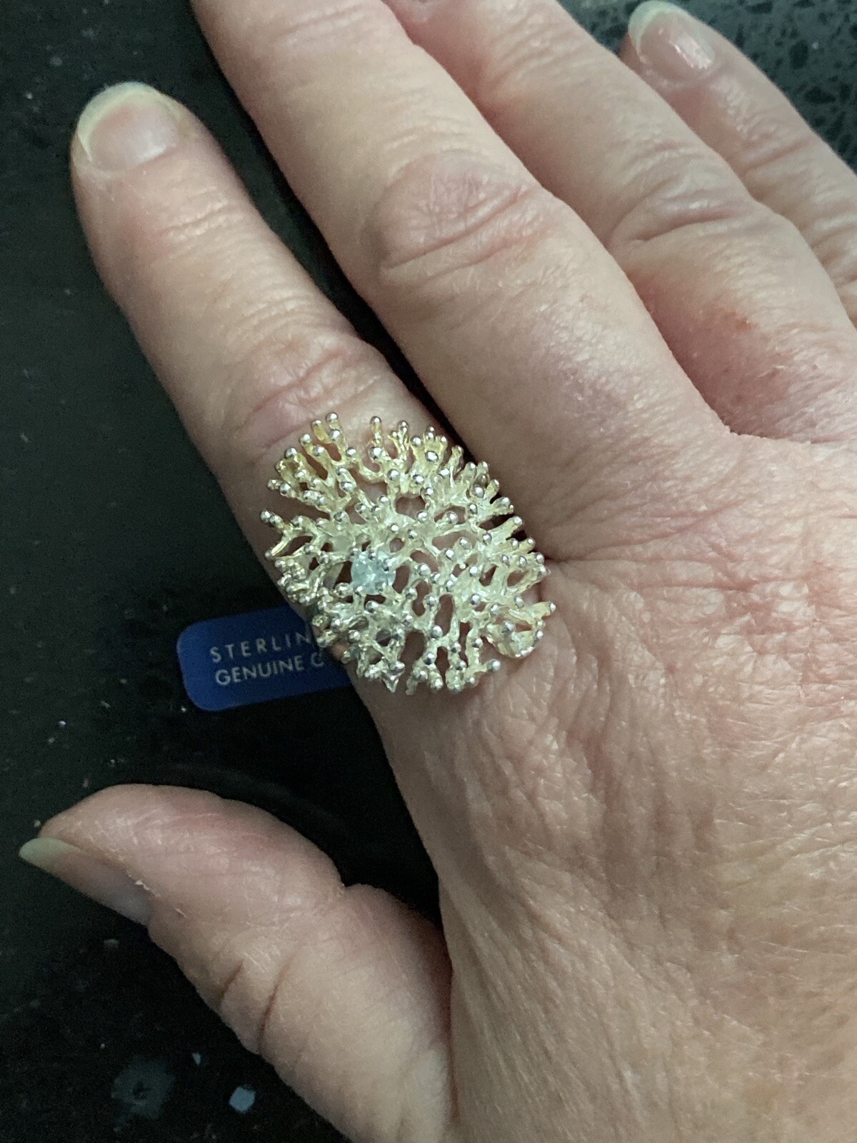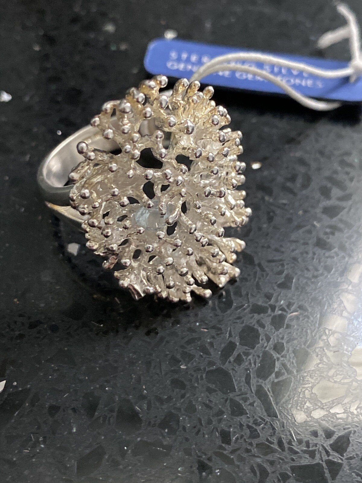 как выглядит Teocalli Sterling Silver Beach Coral Reef Sculpted w/ Blue Chalcedony Ring Sz 10 фото