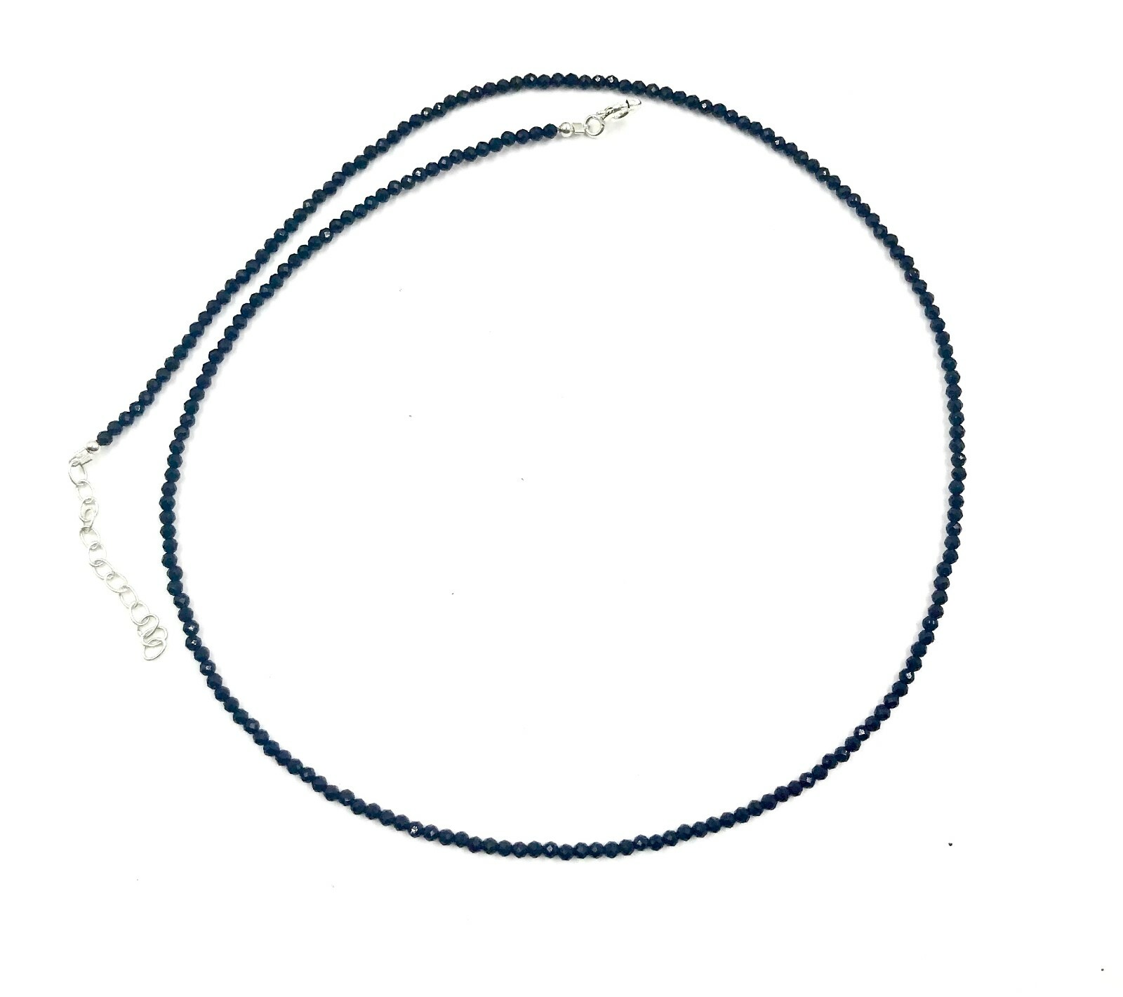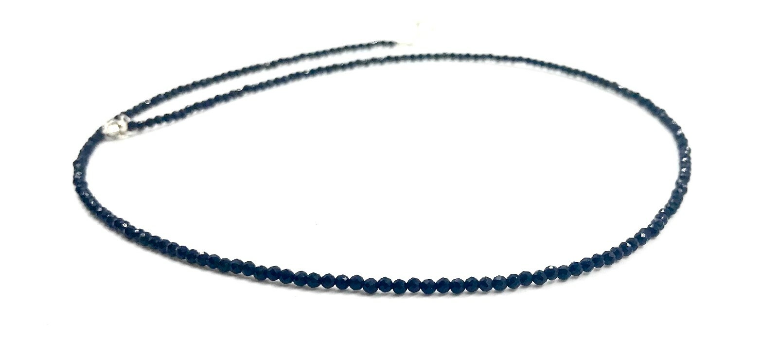 925 Silver Black Spinel Bead Strand Necklace Jewelry Women Handmade USA SELLER