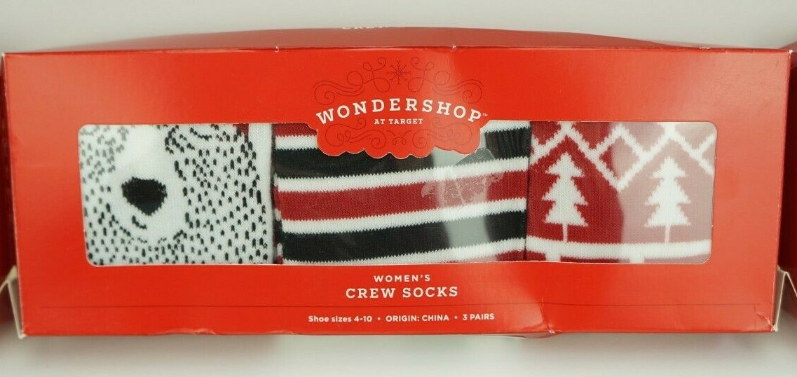 NEW Wondershop Women's Holiday Crew Casual Socks 3 Pack Shoe Size 4-10