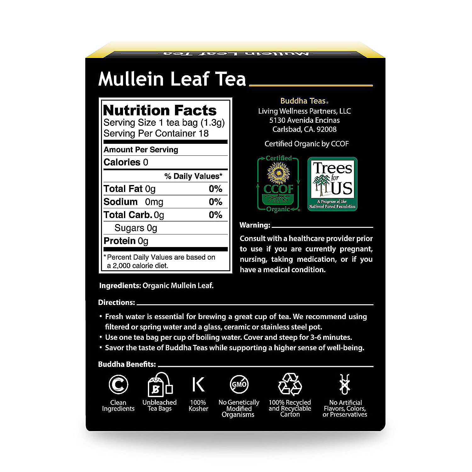 Buddha Tea Organic Mullein Leaf Infusion Tea, 18 Tea Bags