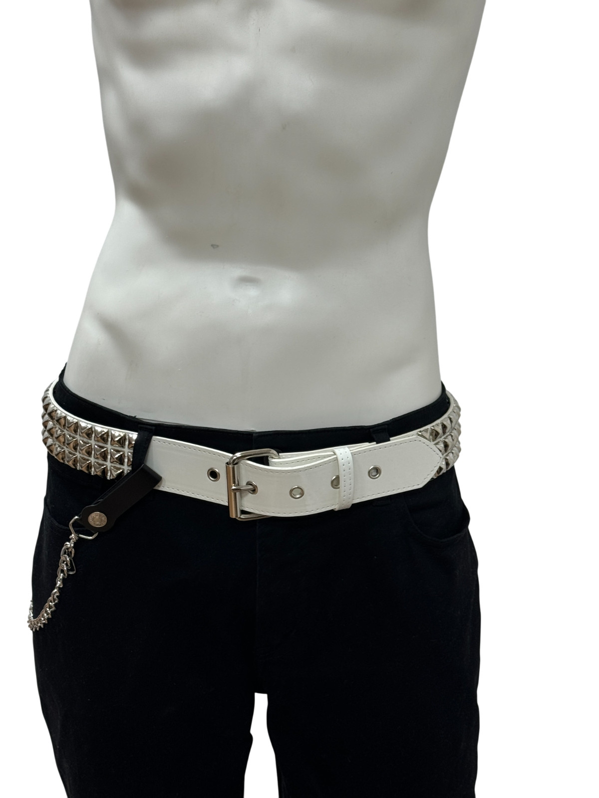 как выглядит White Patent Vegan Three Row Pyramid Stud Belt Punk Goth Metal Funk Plus фото