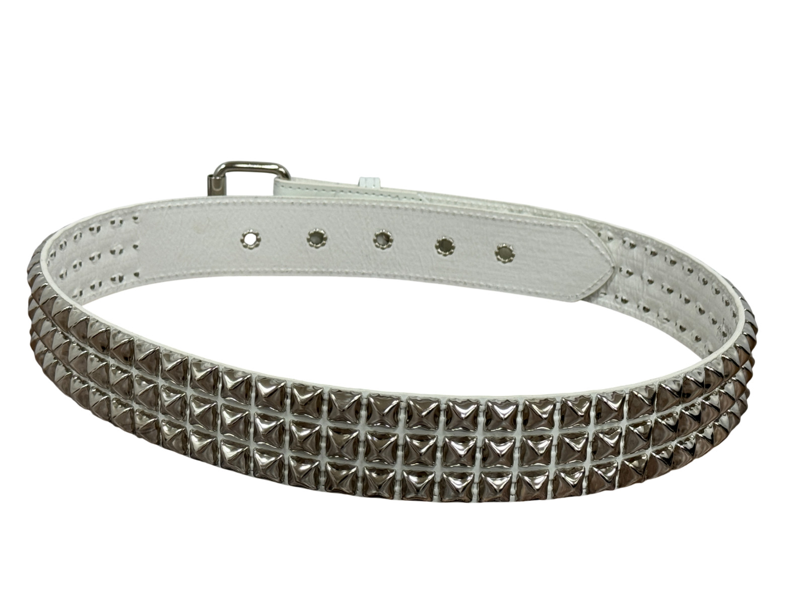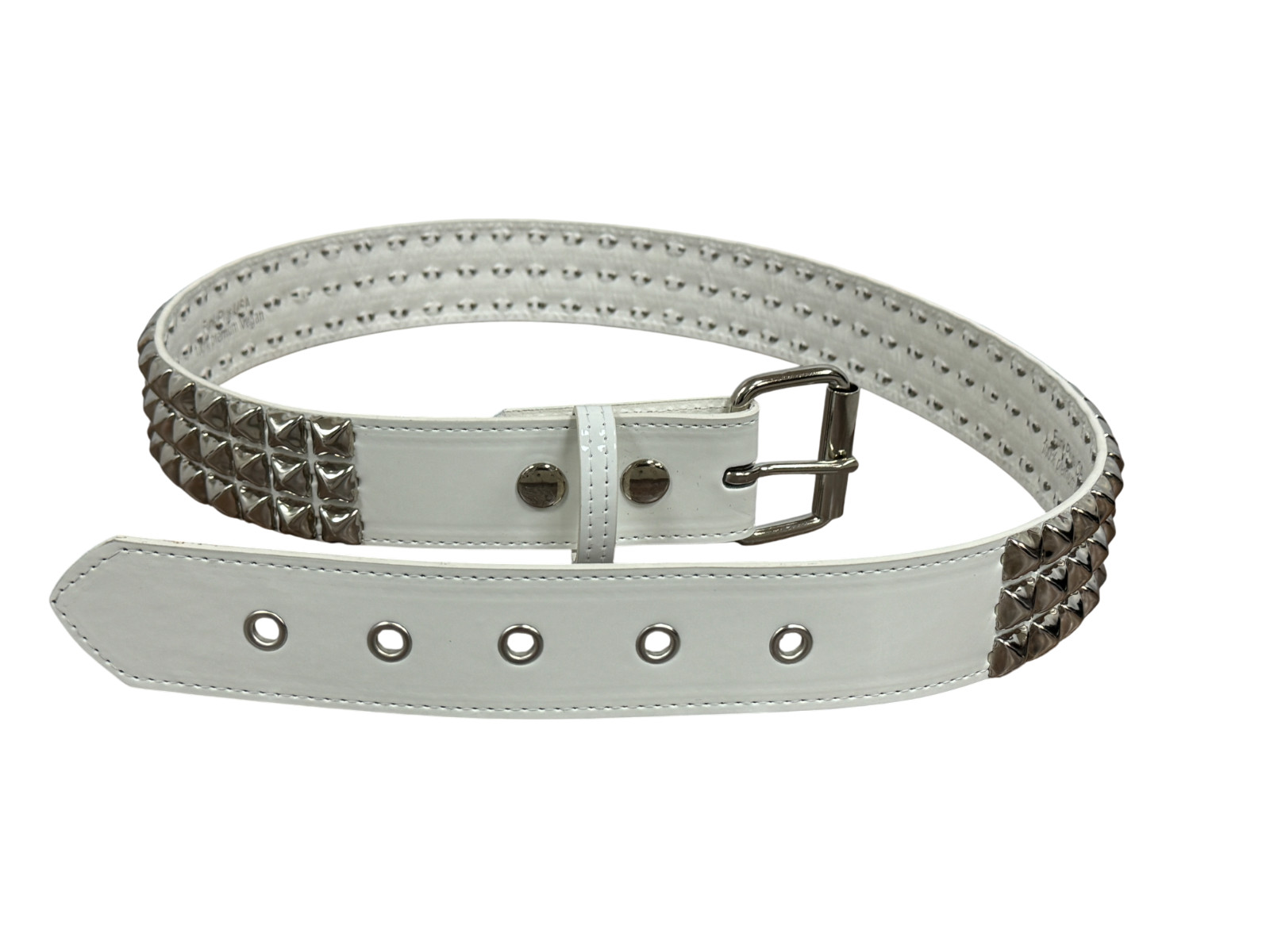 White Patent Vegan Three Row Pyramid Stud Belt Punk Goth Metal Funk Plus