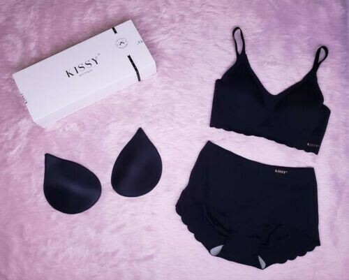 KISSY Patented Wireless and Seamless Bra Set - Black Large