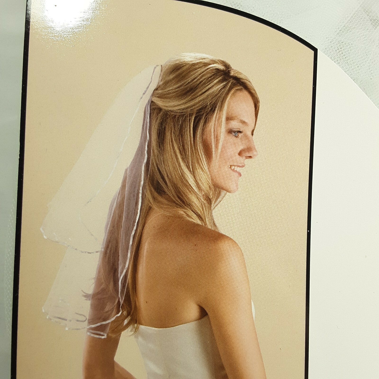 как выглядит NIP His Hers White Satin Ribbon Edge Wedding Communion Veil Womens Accessory фото