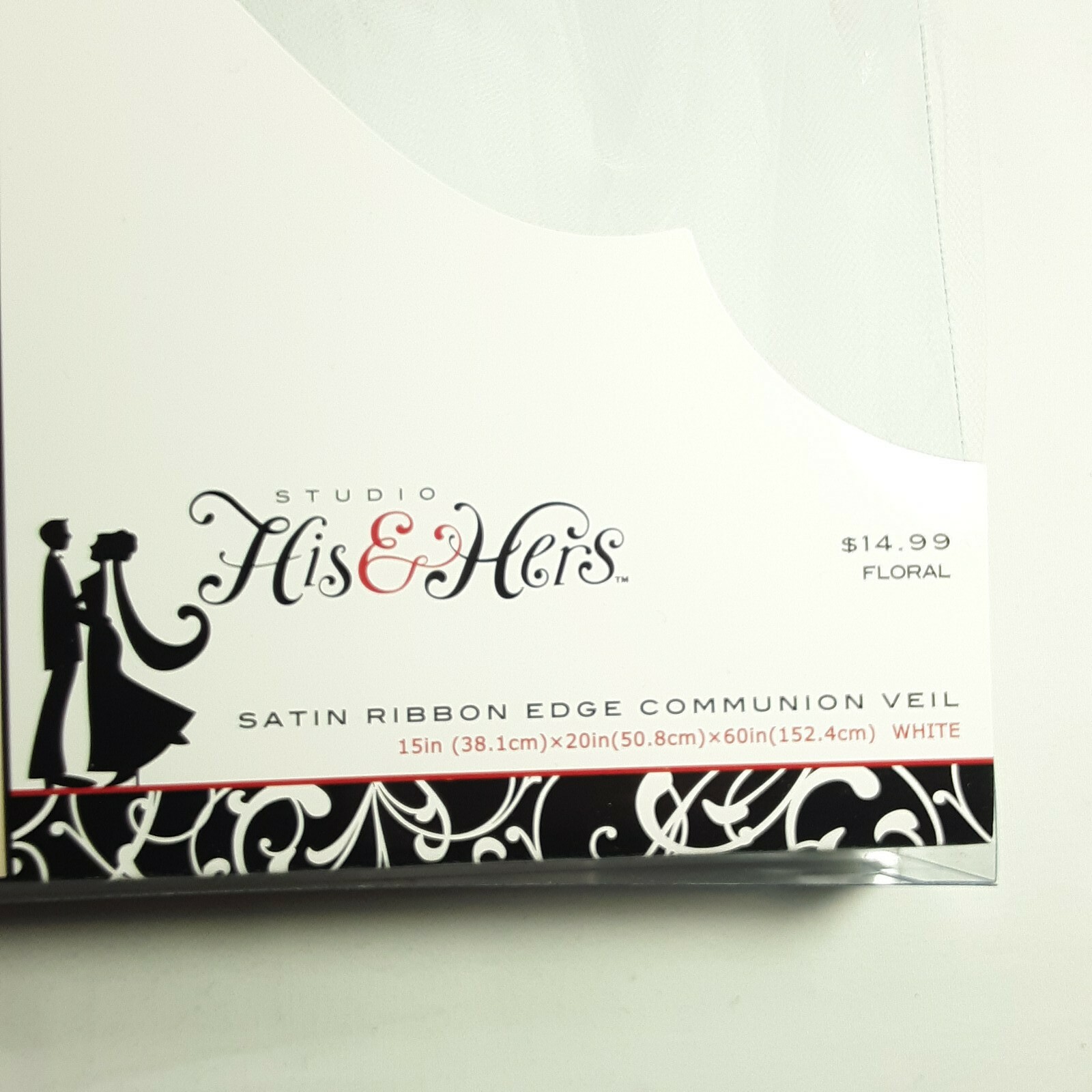 NIP His Hers White Satin Ribbon Edge Wedding Communion Veil Womens Accessory