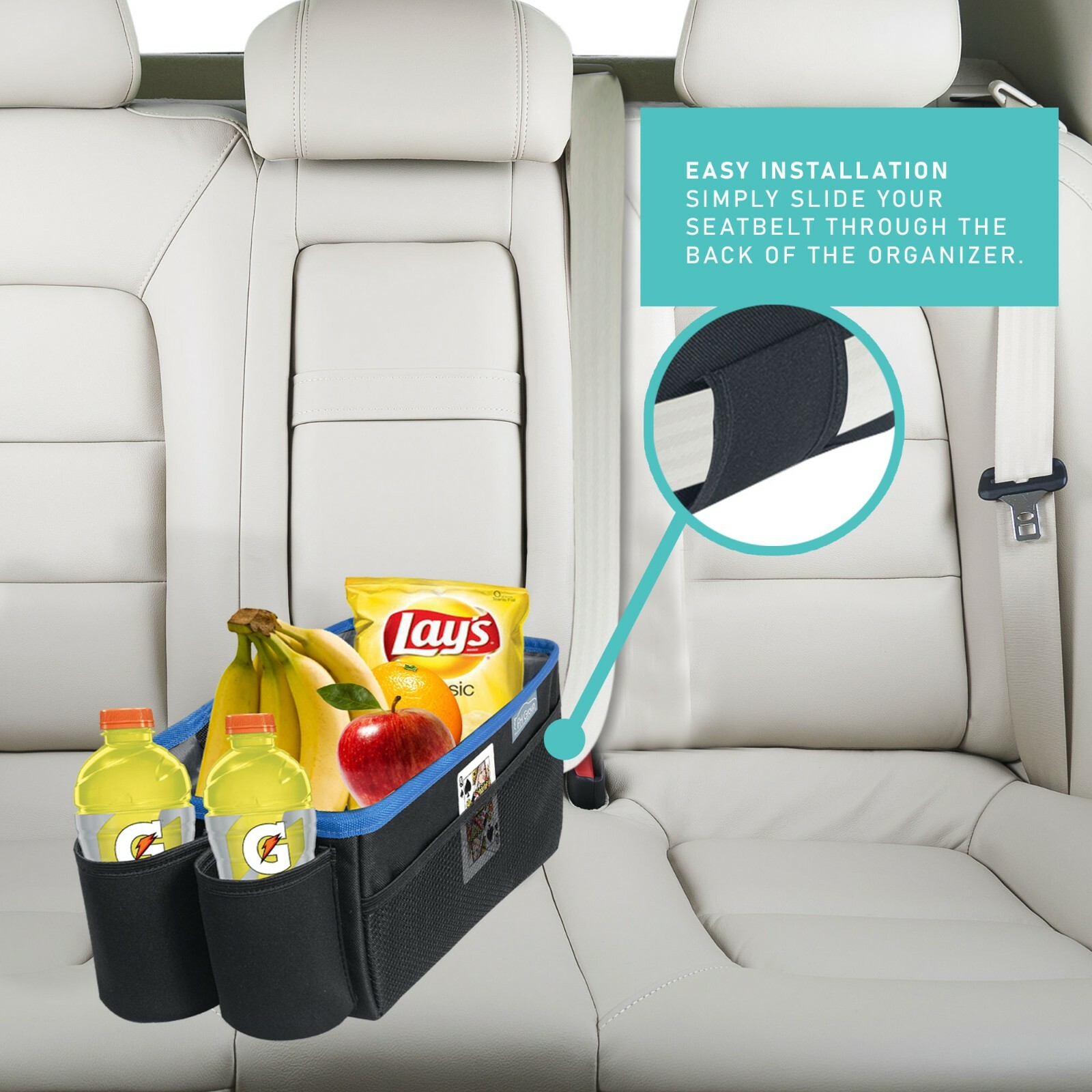 Car Seat Organizer with Cup Holder for In Between Seat, Backseat Storage for Car