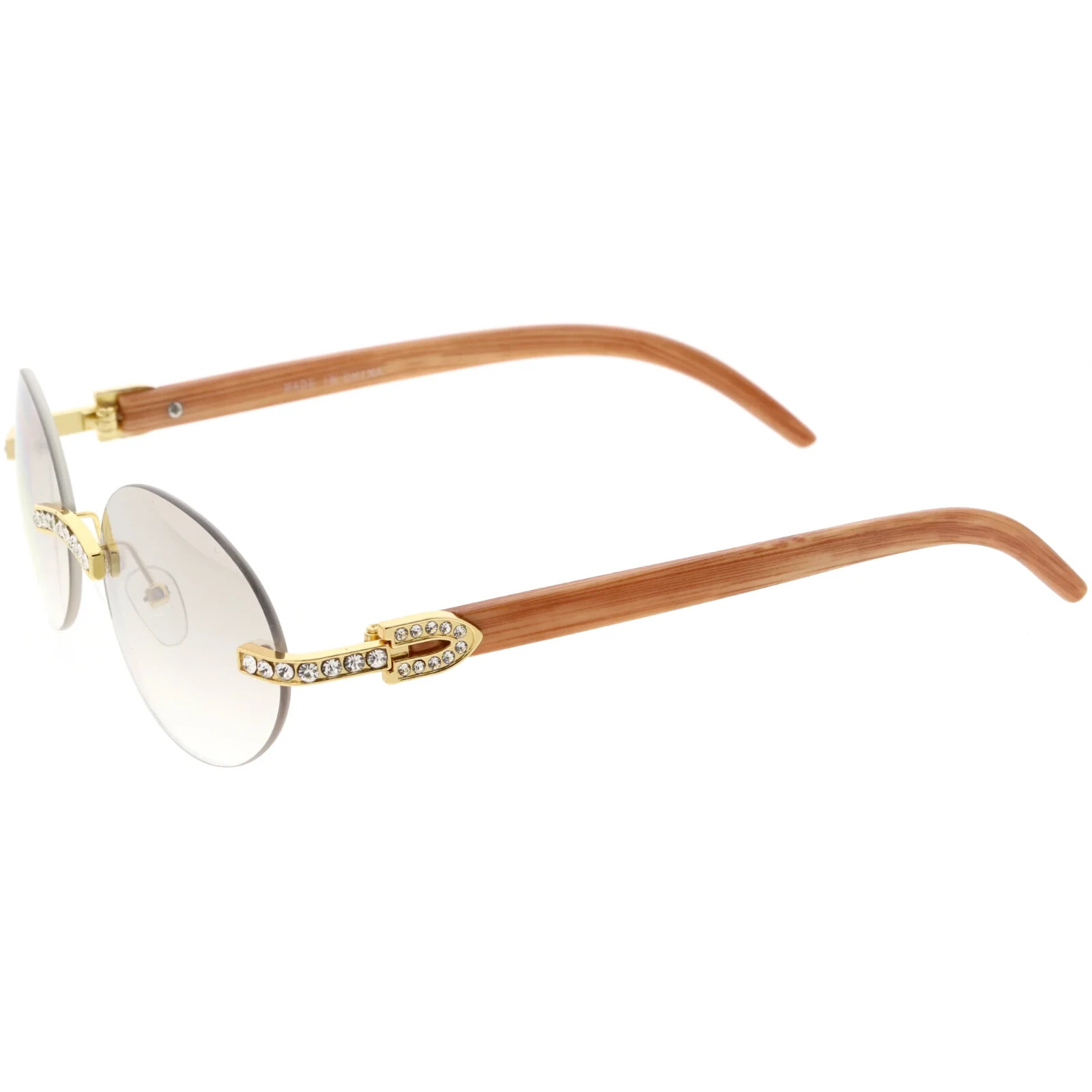 Mens Sunglasses Hip Hop Quavo Migos Rimless Diamond Oval Frame Black Lens Gold