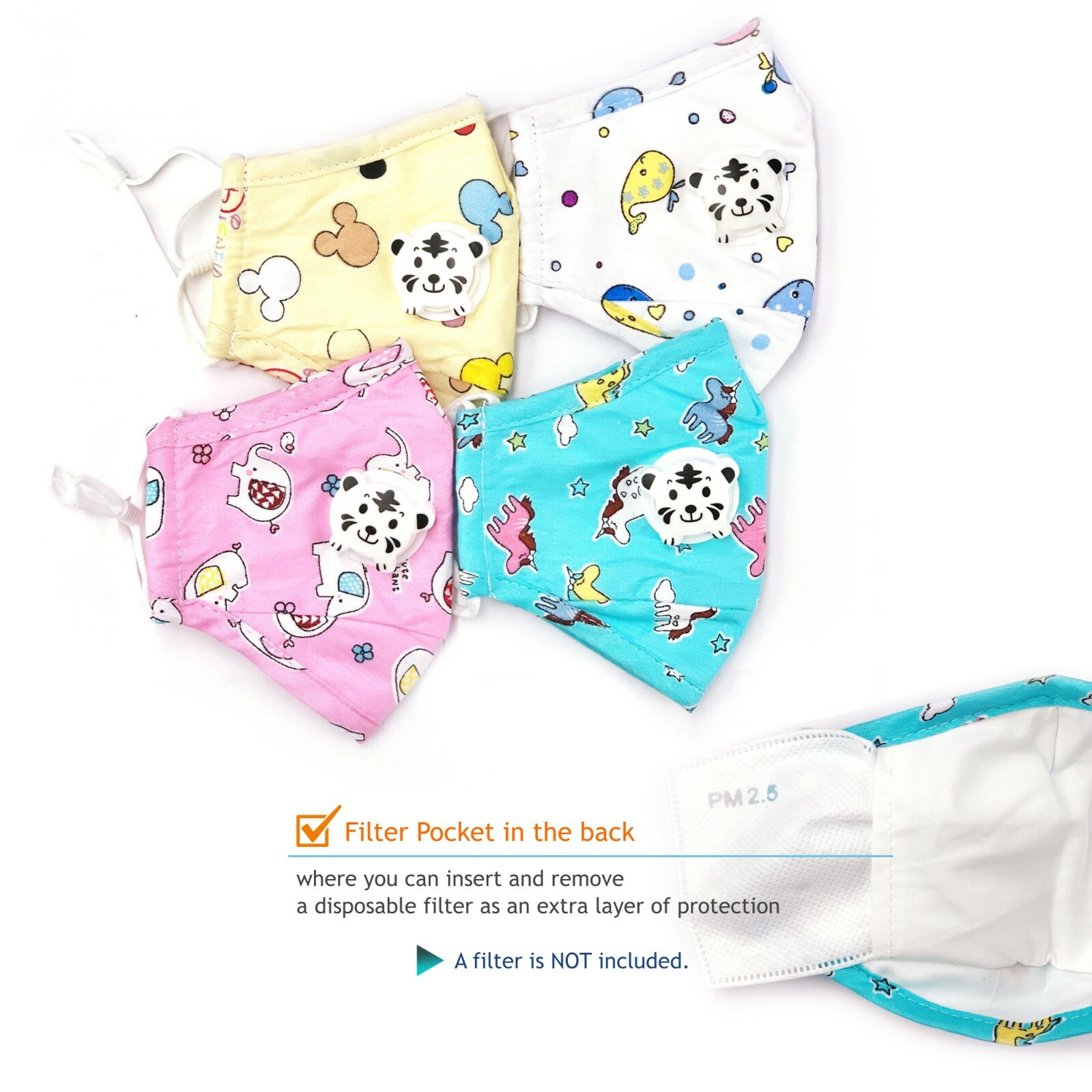 Kids Face Mask 100 Cotton Face Mask With Breathing Valve Reusable and Washable
