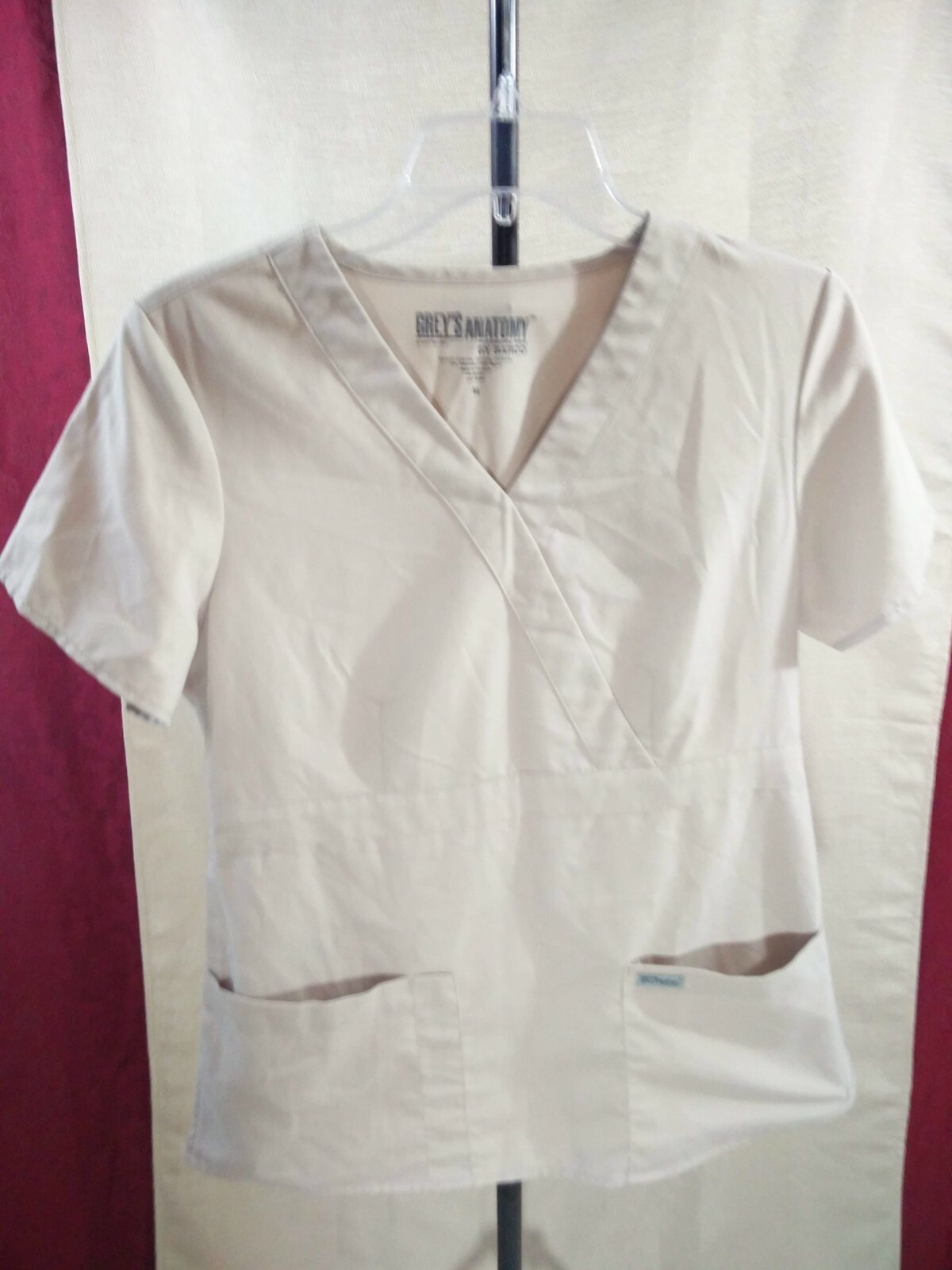 Women's Grey s Anatomy Beige Size M Scrub V-Neck Top With Pockets