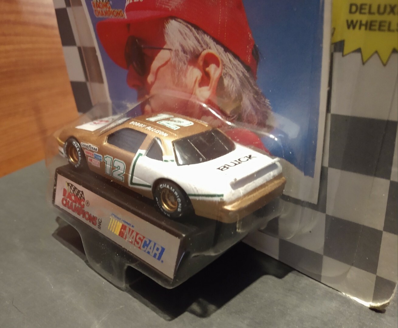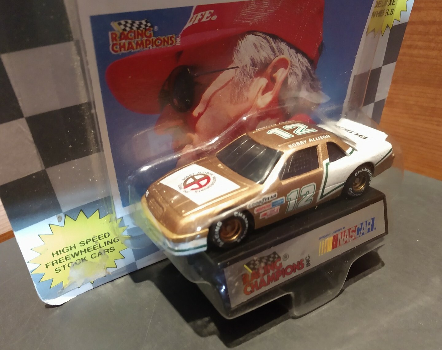 '91 RACING CHAMPIONS BOBBY ALLISON 12 1/64TH CAR, COLLECTOR CARD STAND