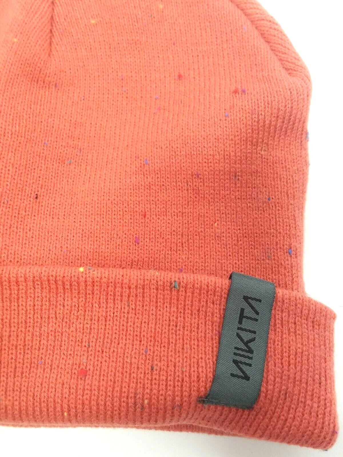 как выглядит Nikita Tundra Slouchy Fine Knit Cuffed Beanie Coral Reef Logo One Size фото