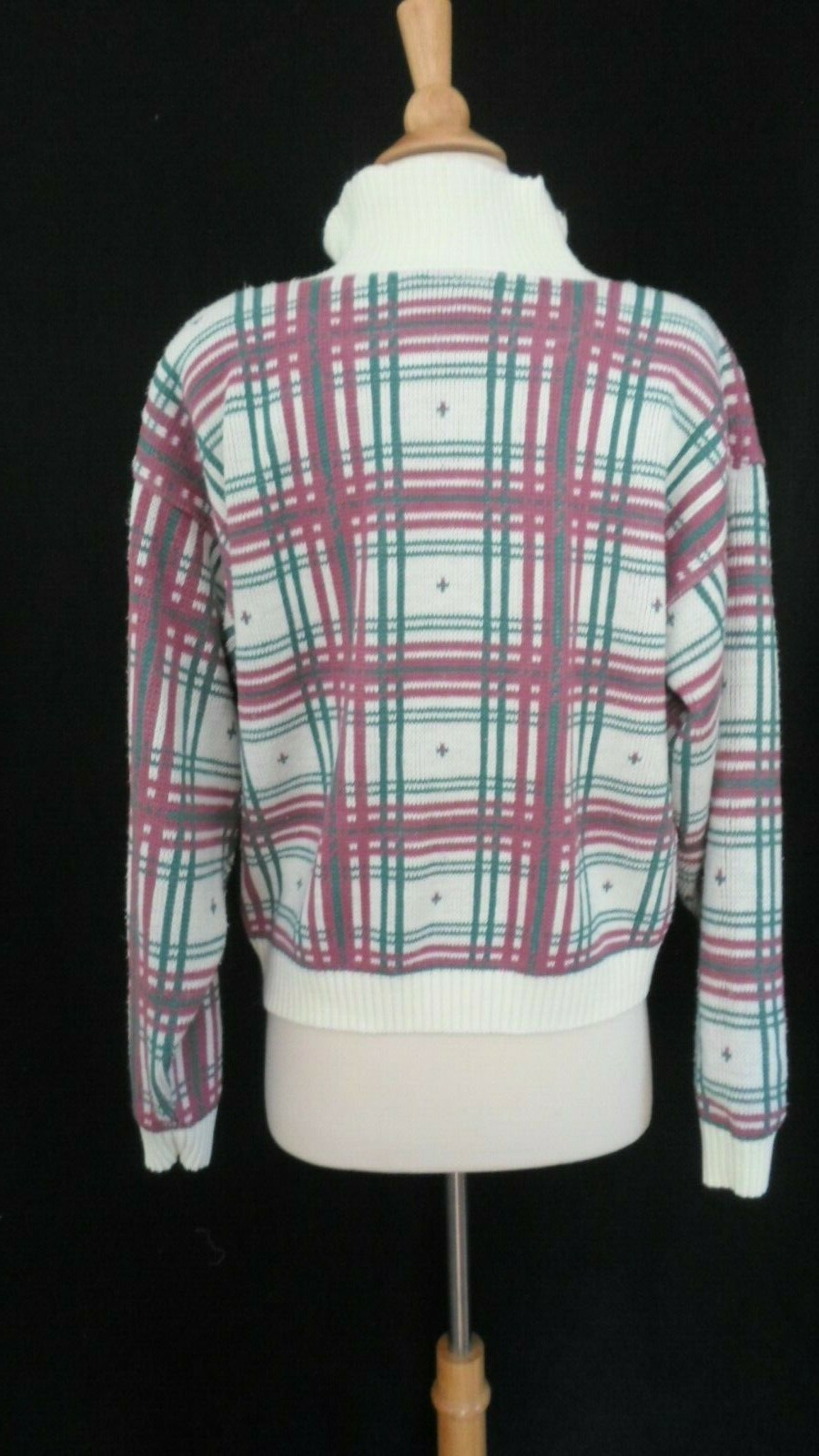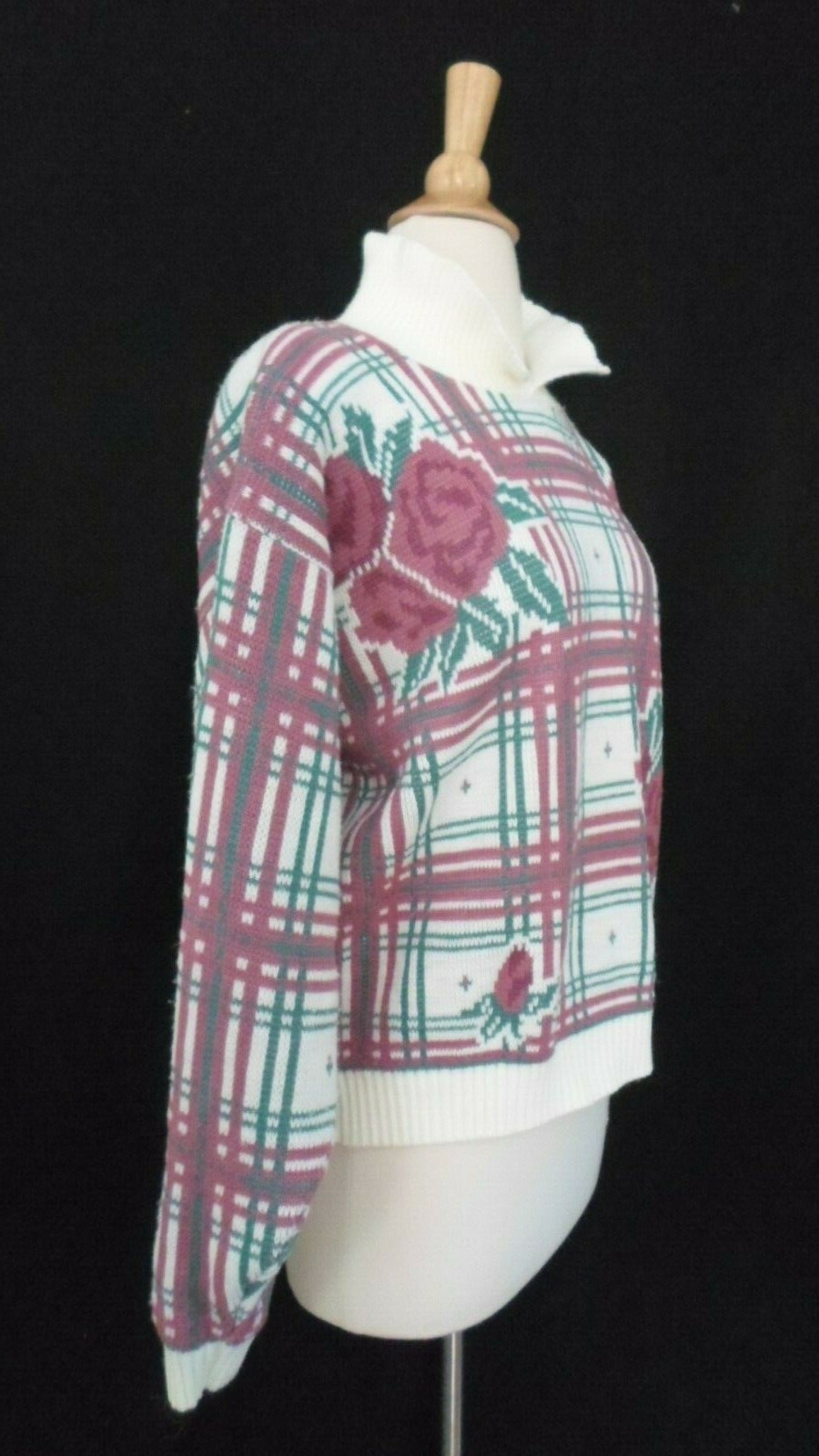 как выглядит 1980s VINTAGE 80s Fairy Kei Kawaii Rose Print Plaid Sweater Pop Collar фото
