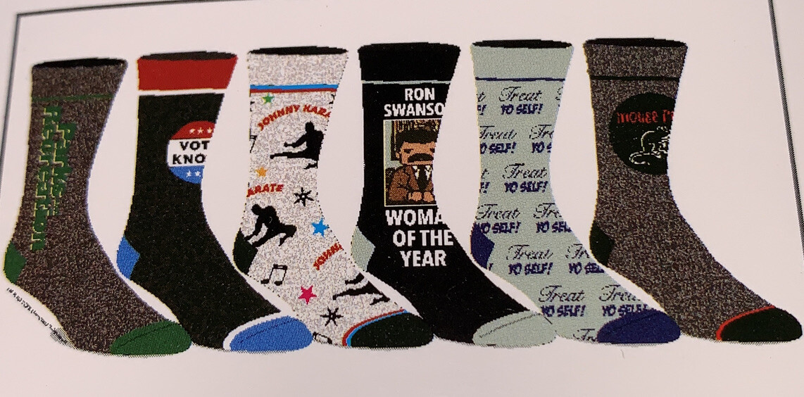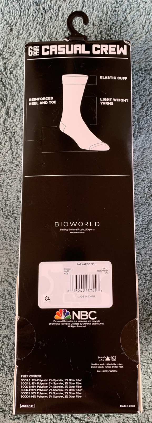 как выглядит NBC Parks and Recreation Novelty Adult 6 Pk Crew Socks Sz 8-12 Age 14 OSFM New фото