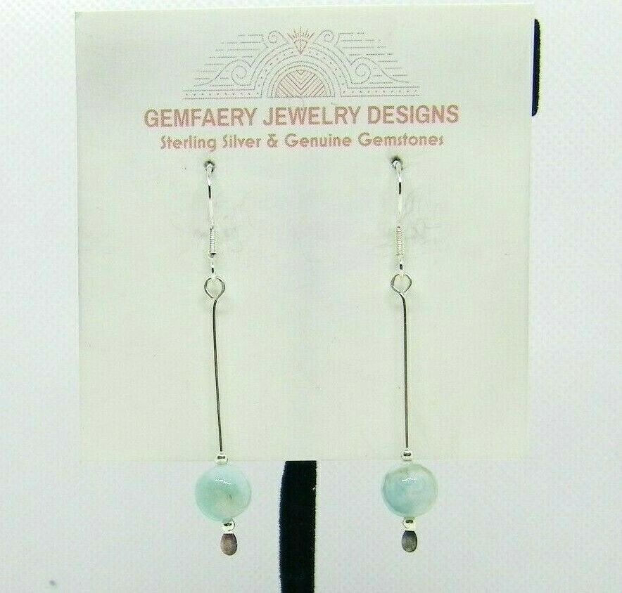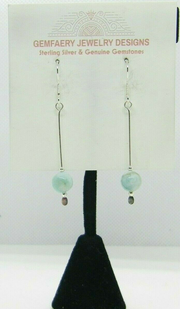 Sterling Silver Natural LARIMAR Gemstone Long Dangle Earrings 41...Handmade USA