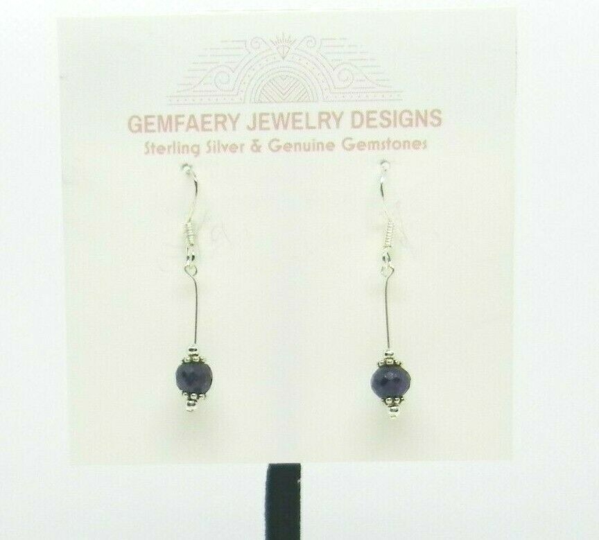 как выглядит Sterling Silver Faceted Natural SAPPHIRE Gemstone Dangle Earrings...Handmade USA фото