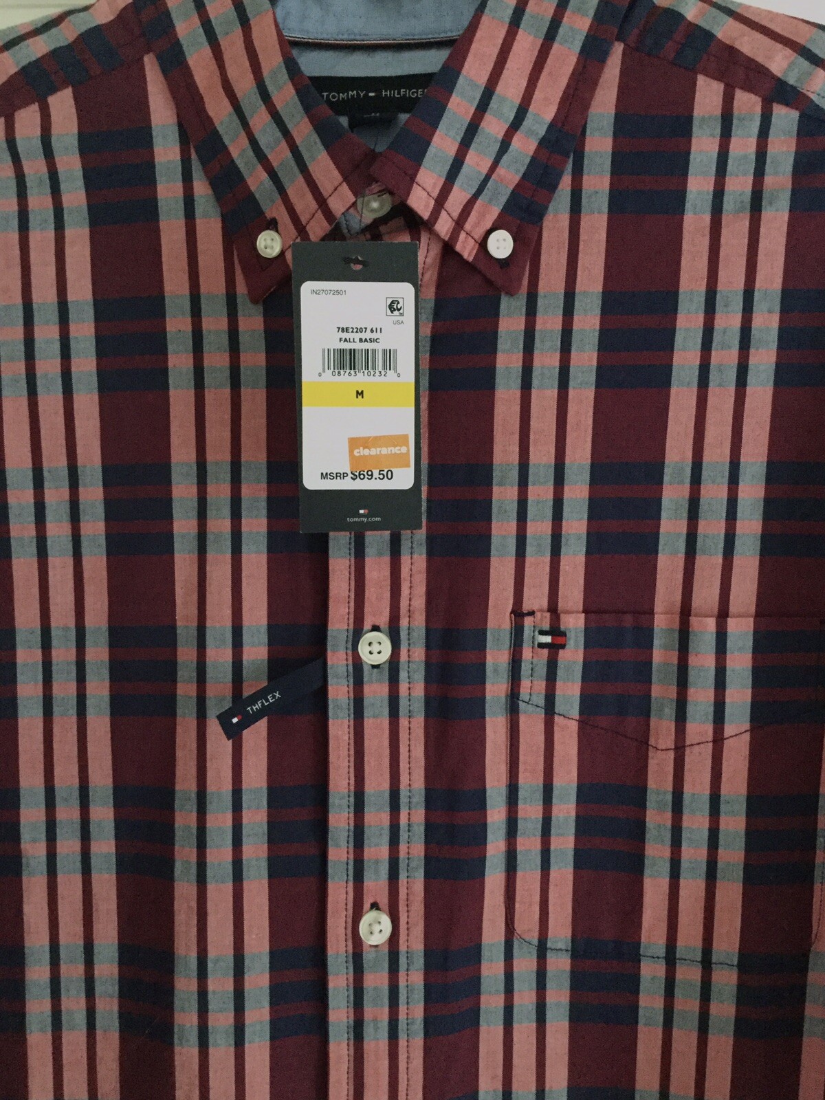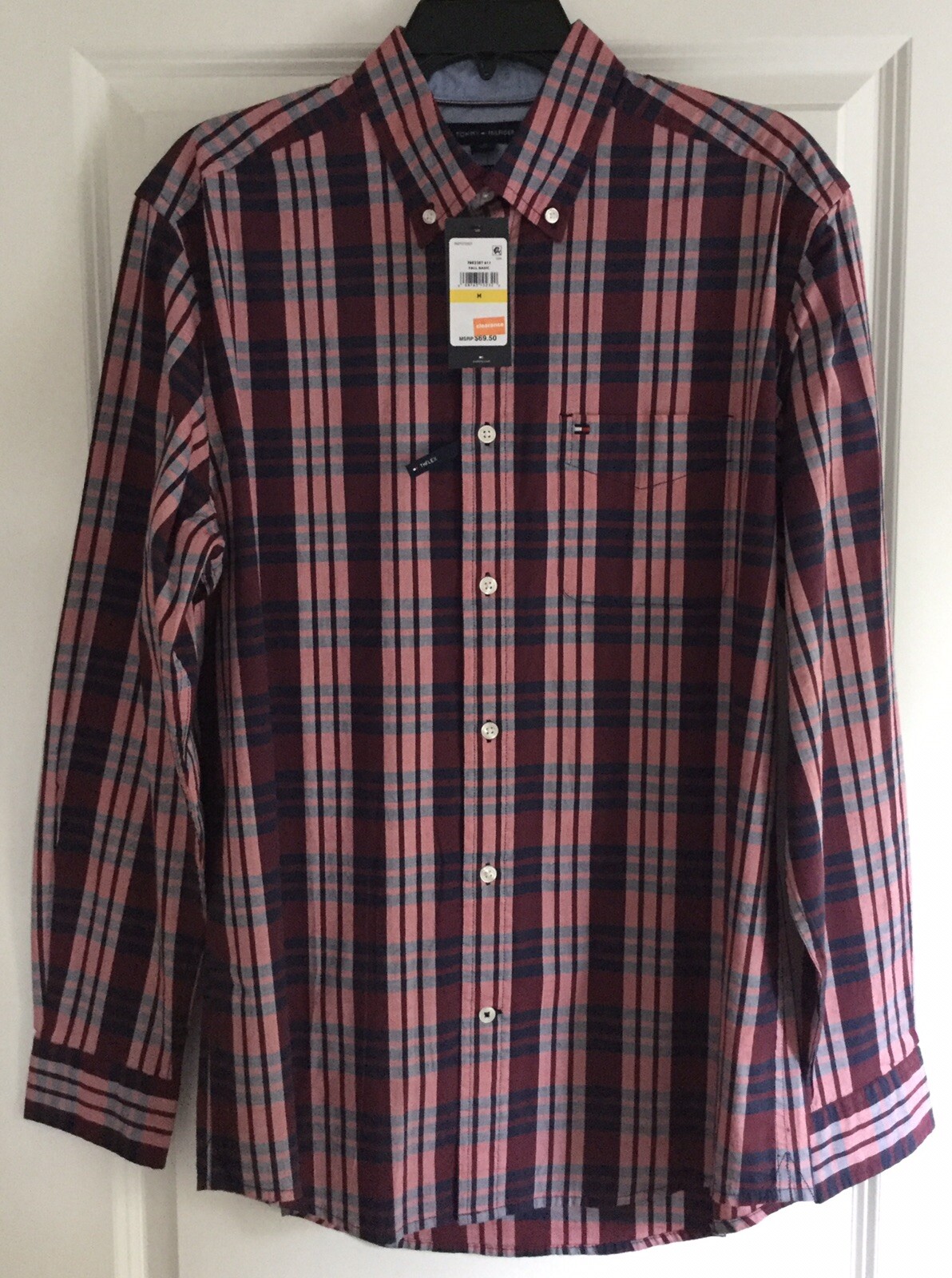 NWT TOMMY HILFIGER MENS PLAID LONG SLEEVE BUTTON UP SHIRT SIZE MED MSRP 69.50