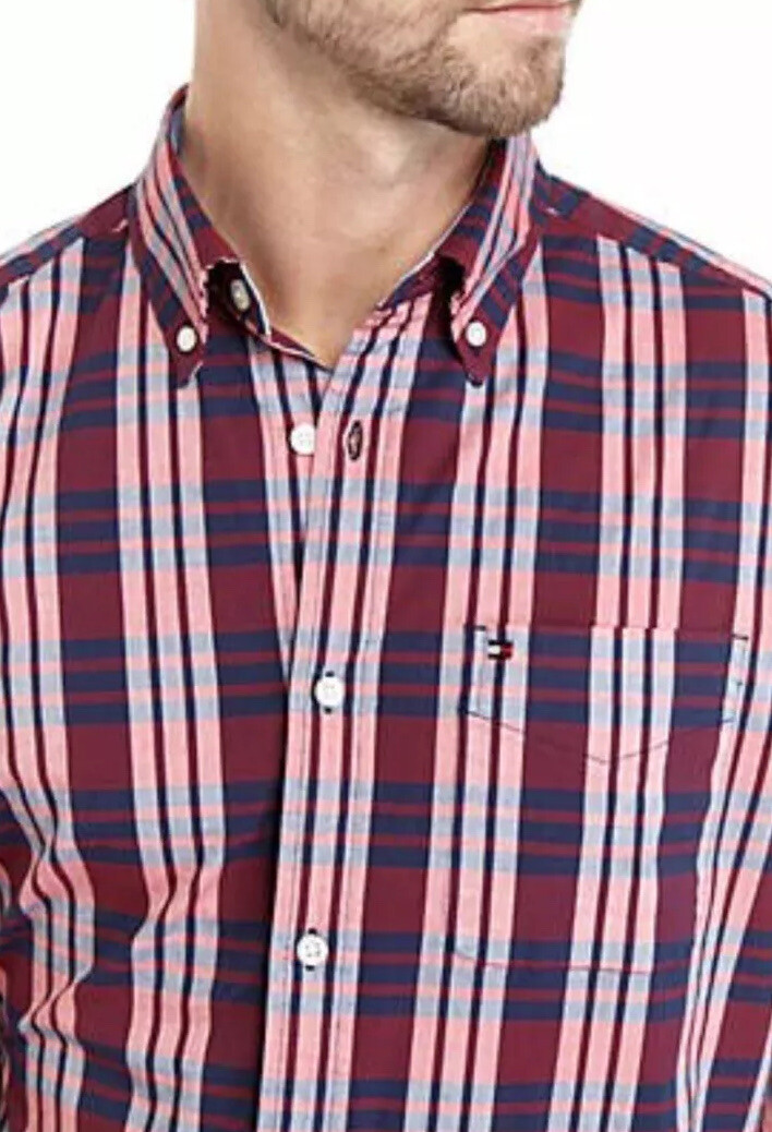 как выглядит NWT TOMMY HILFIGER MENS PLAID LONG SLEEVE BUTTON UP SHIRT SIZE MED MSRP 69.50 фото