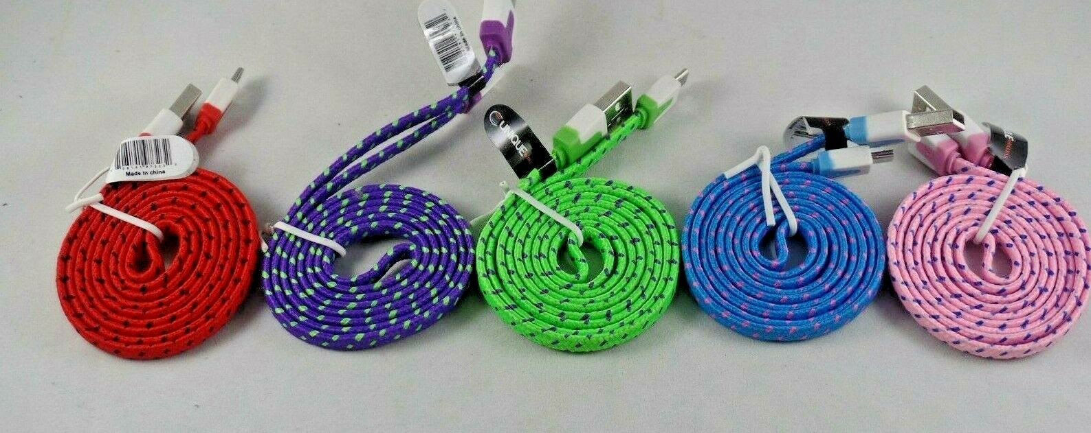 Wholesale Lot 3FT 1M FLAT Braided micro USB to USB Charger Cables 5 pieces total