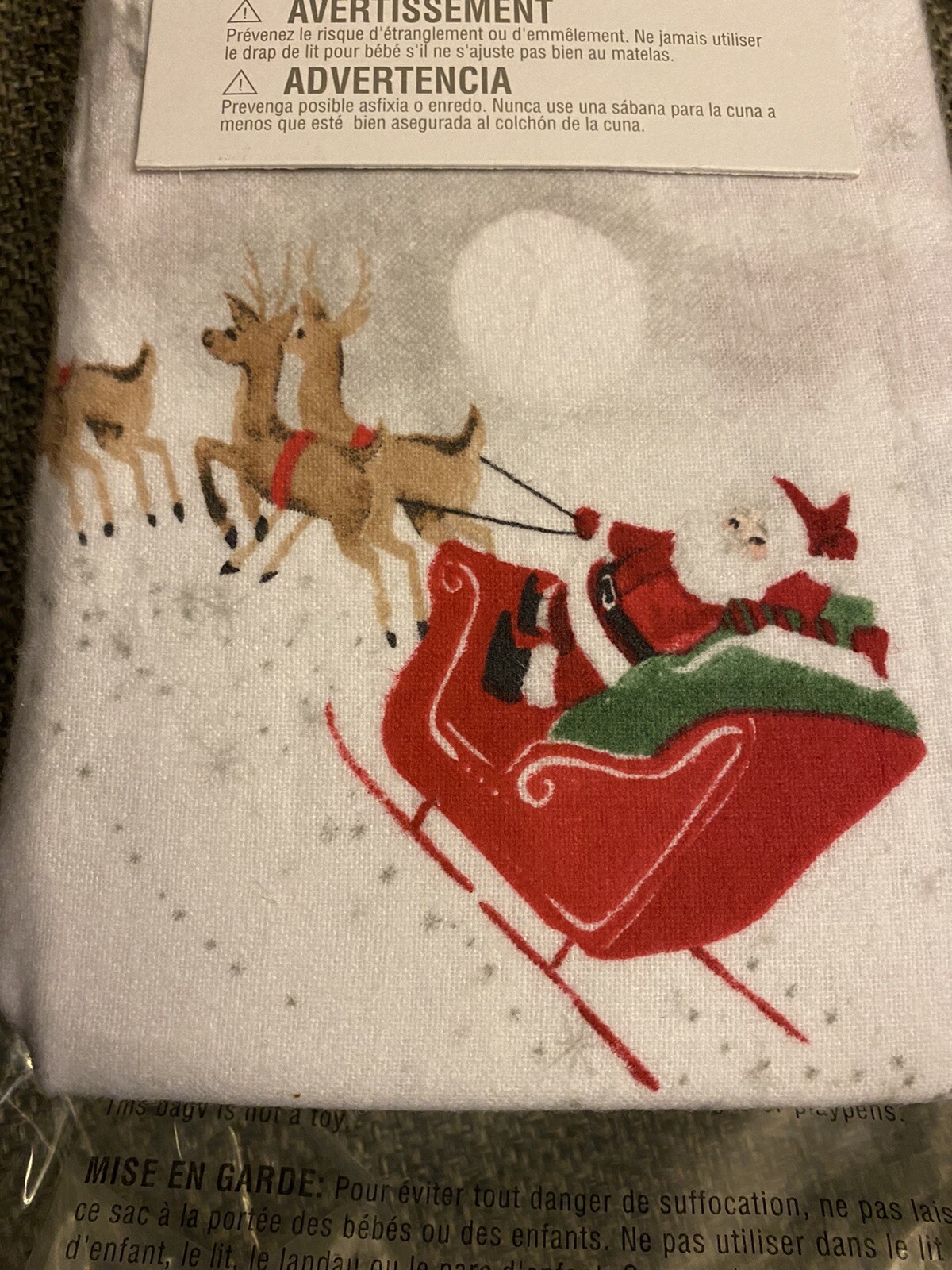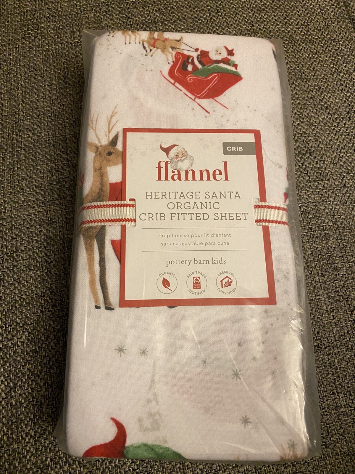 Pottery Barn Kids Flannel, Organic Cotton Heritage Santa Crib Fitted Sheet