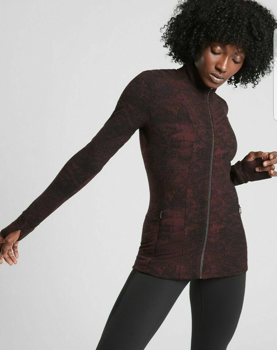 как выглядит NWOT Athleta Shanti Jacquard Jacket, Antique Burgundy SIZE S  486698 T1212H фото