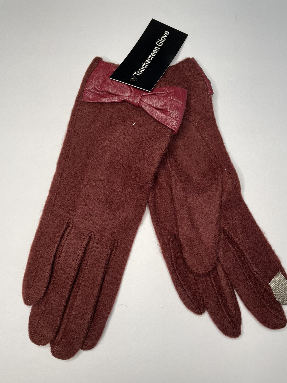 Ladies Fleece Touchscreen Gloves With Bow Accent Detail, Burgundy/Maroon S/M New