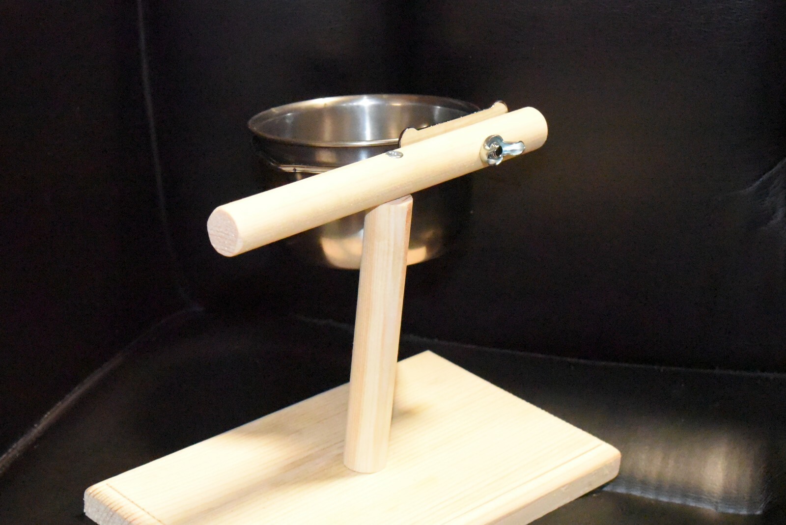 как выглядит TWO Small Bird Portable Wood Perch w/8 oz. 30 oz. bird bath S.S. bolt-on Cups фото