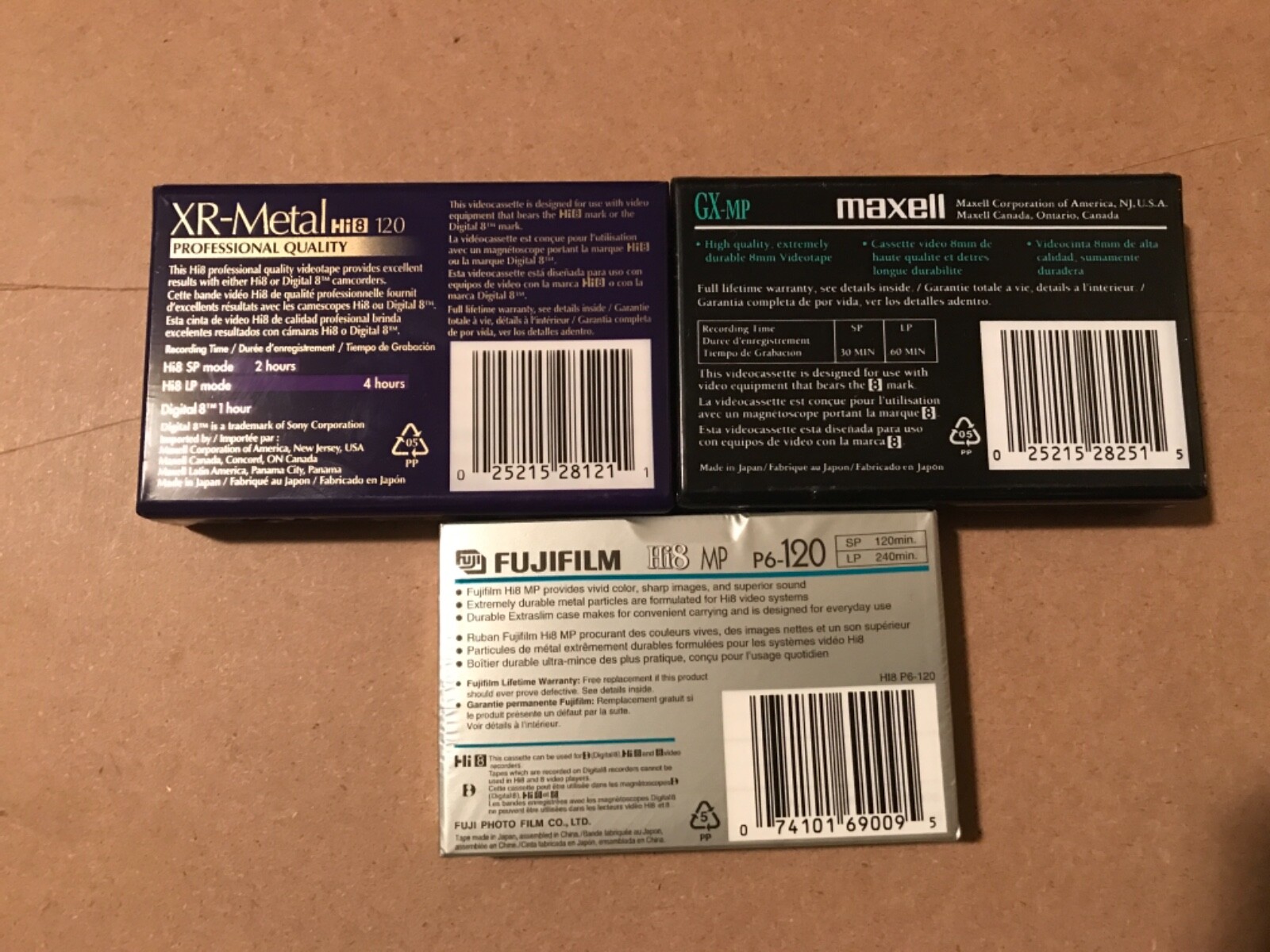Assorted Set of 3 New Sealed Maxell / Fuji 8mm 120 Video Tapes