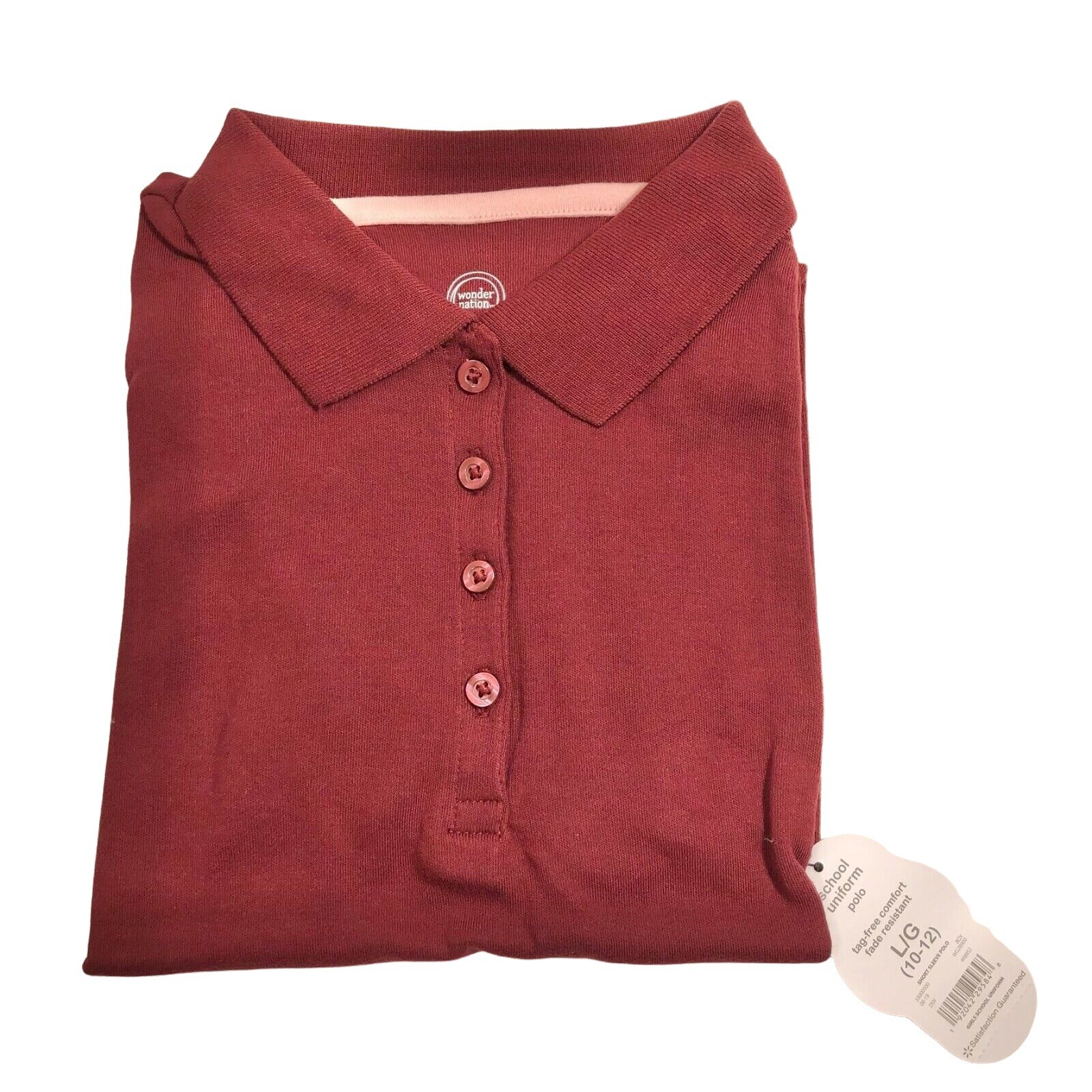 Wonder Nation Girls Uniform Short Sleeve Polo-style Burgundy L Tagless Comfort