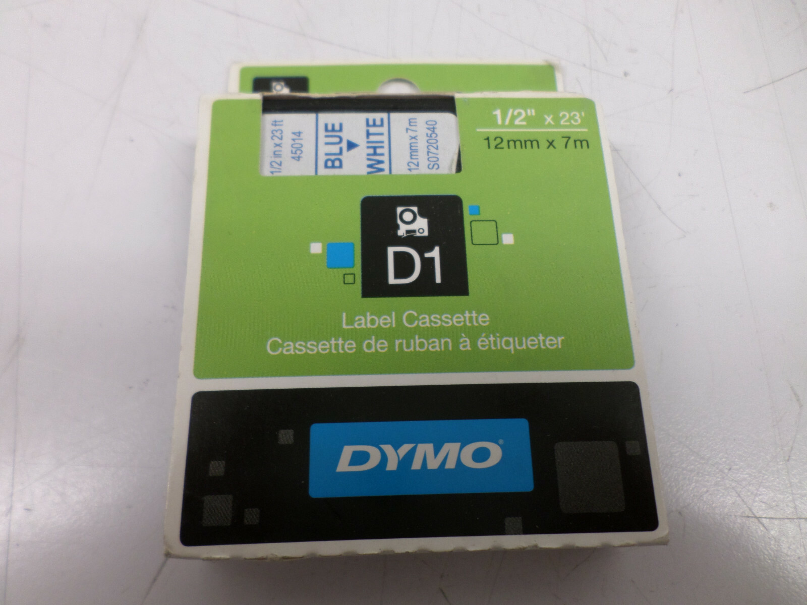 как выглядит Pack of 5 DYMO D1 Label Cassette 1/2" x 23 Item 45014 Blue/White фото