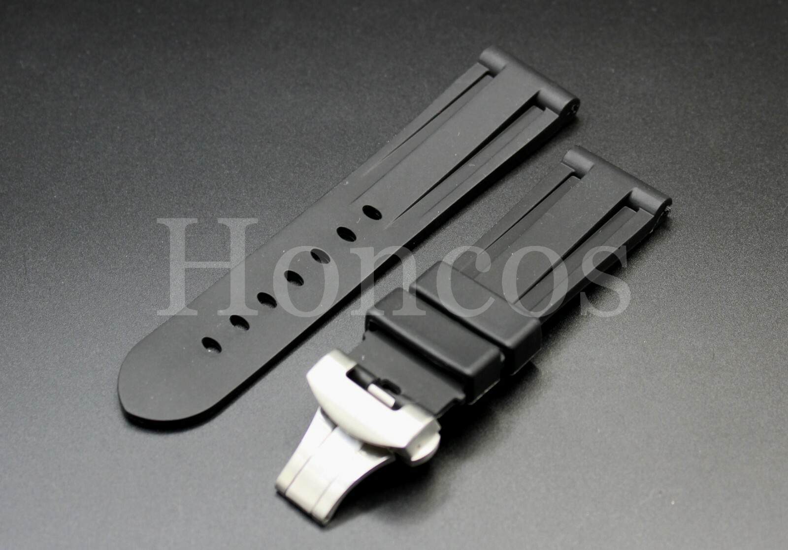 24mm Rubber Straps Band Fits For Panerai Watches with Deployment Clasp Buckle