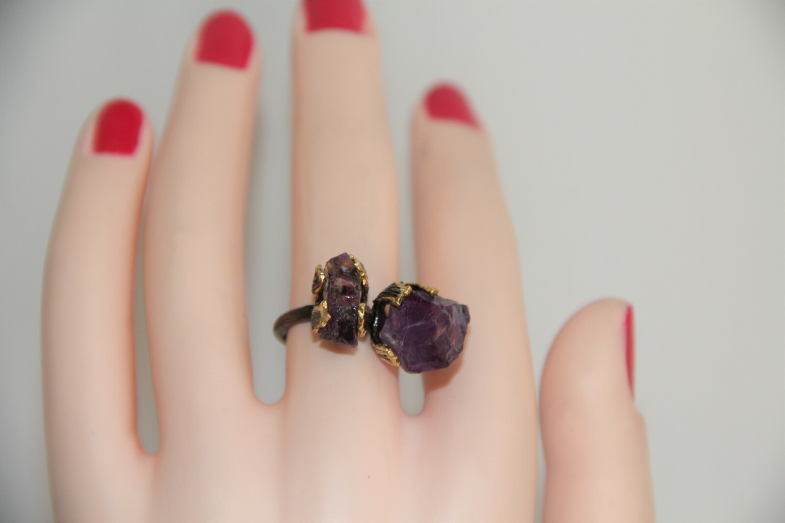 Stunning Raw Amethyst Sterling Silver Gold Vermeil Ring