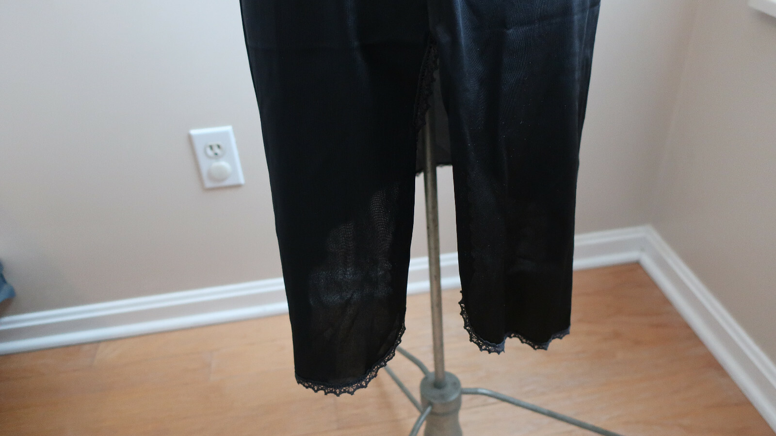 как выглядит VANITY FAIR Black Nylon Half Slip, Touch Of Lace, Tapered Side Slit - Size M USA фото
