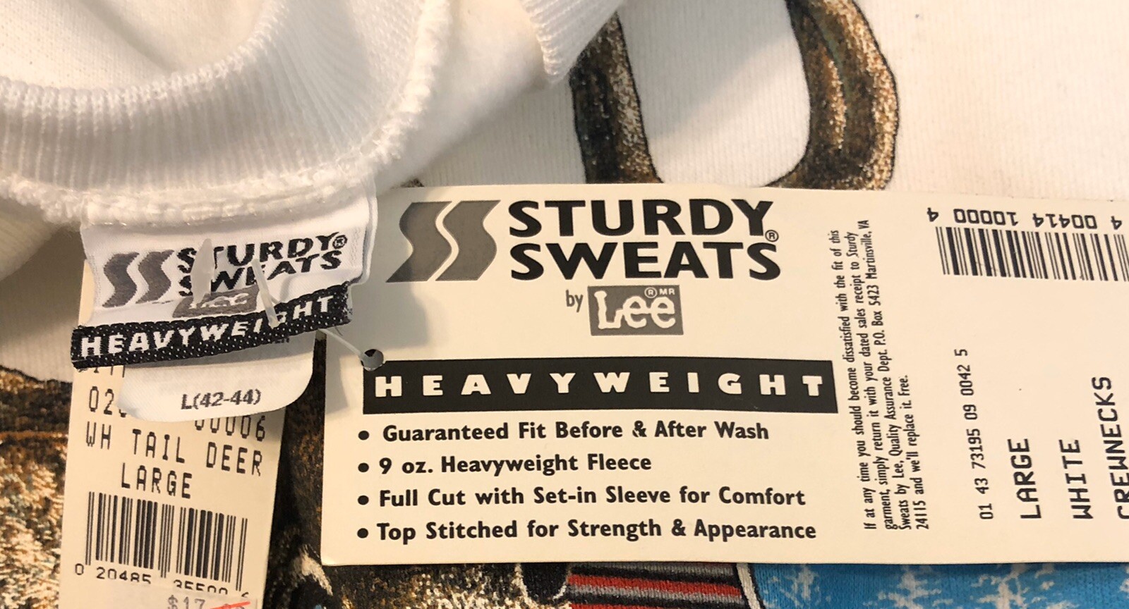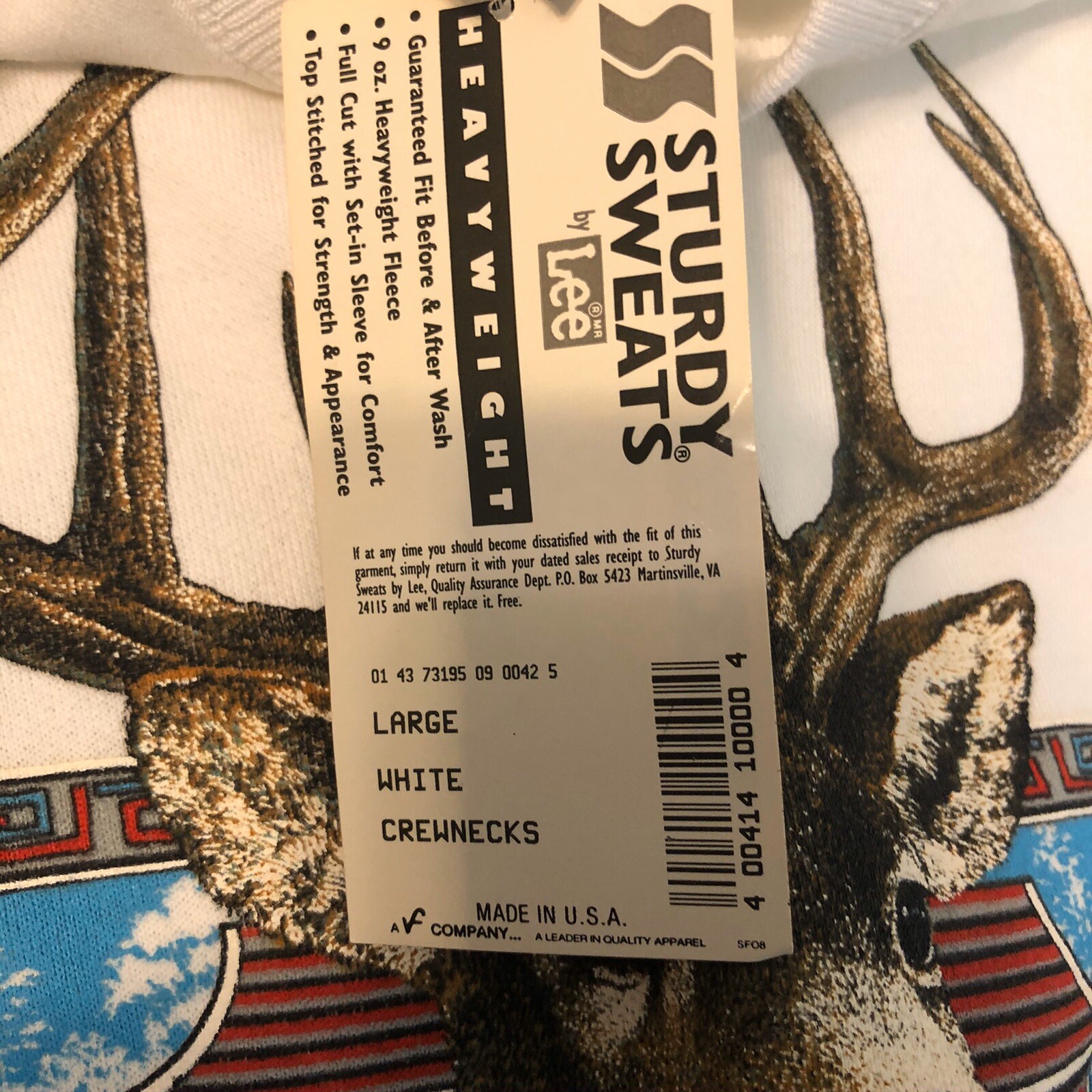 90's Vintage Deadstock Lee Heavyweight 92 White Tail Deer Sweatshirt Size Large