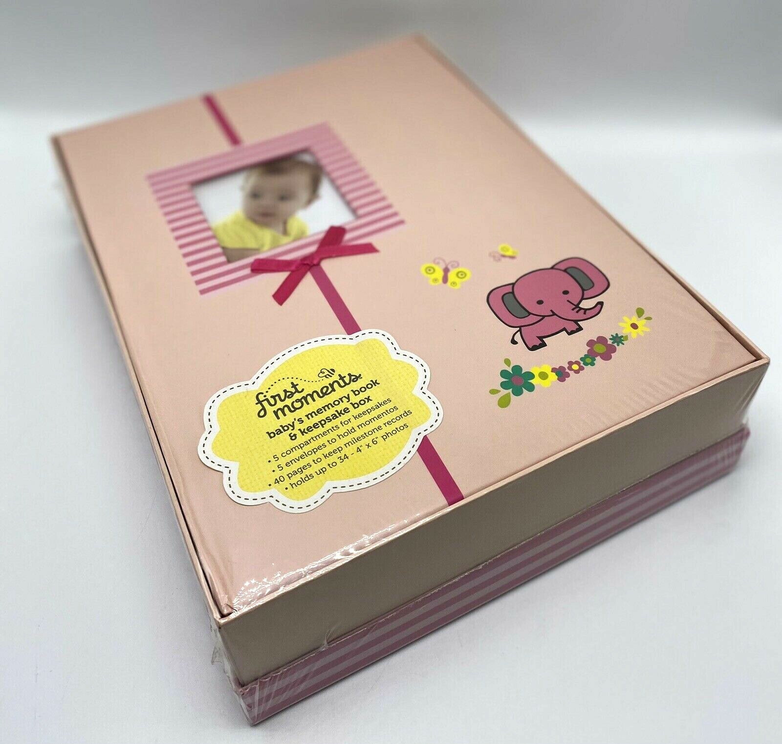 SEALED First Moments Baby Memory Book Keepsake Storage Box Pink Elephant Flowers